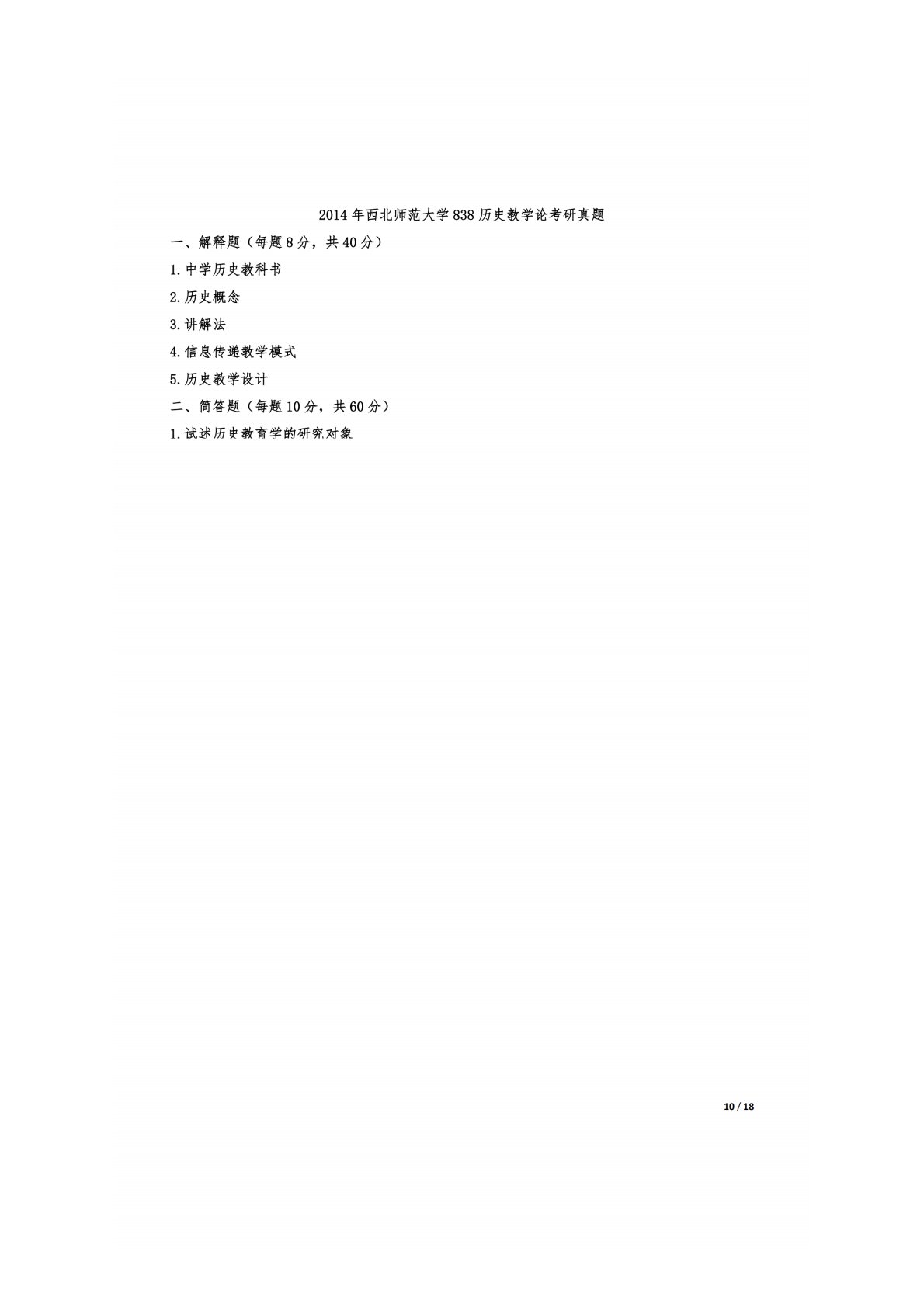 西北师范大学838历史教学论2014年真题