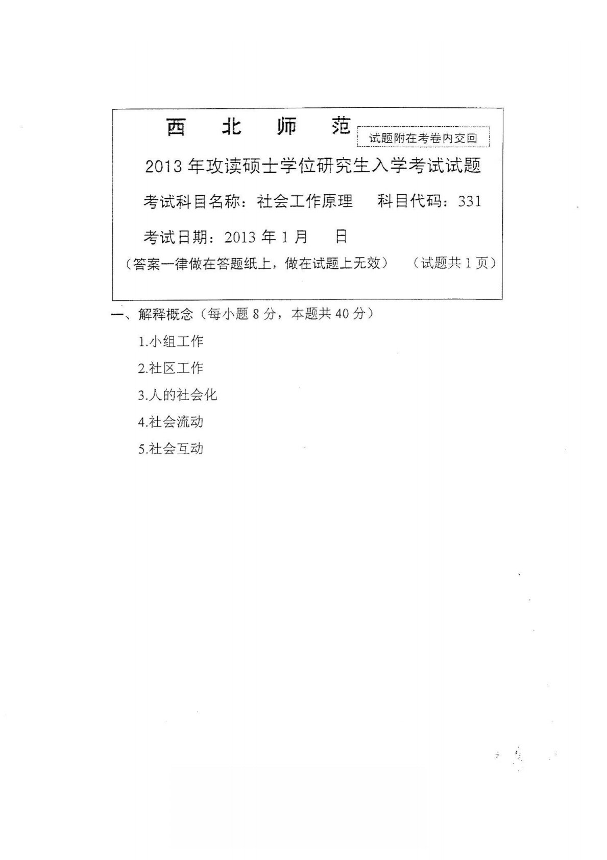 西北师范大学331社会工作原理2013年真题