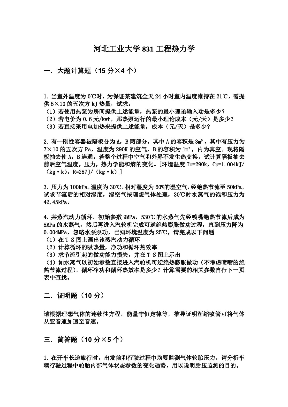河北工业大学831工程热力学2025真题(回忆版有五道简答题,四道大题,最后一道大题差图表没画,最后一道证明题)