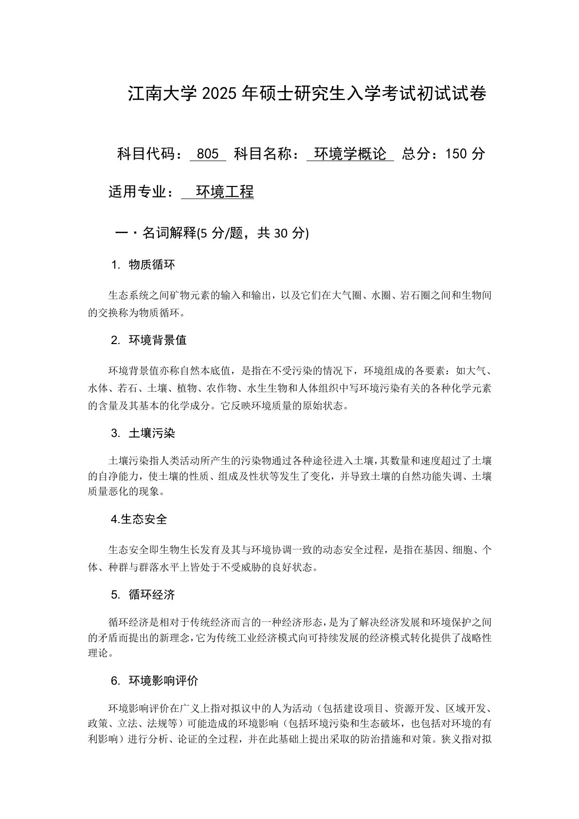 江南大学805环境学概论2025年真题及答案(完整回忆版)