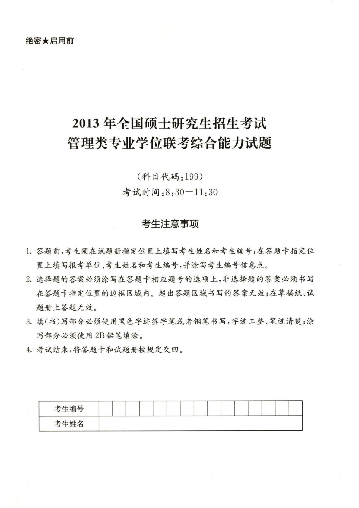 199管理类联考综合能力2013年考研初试真题