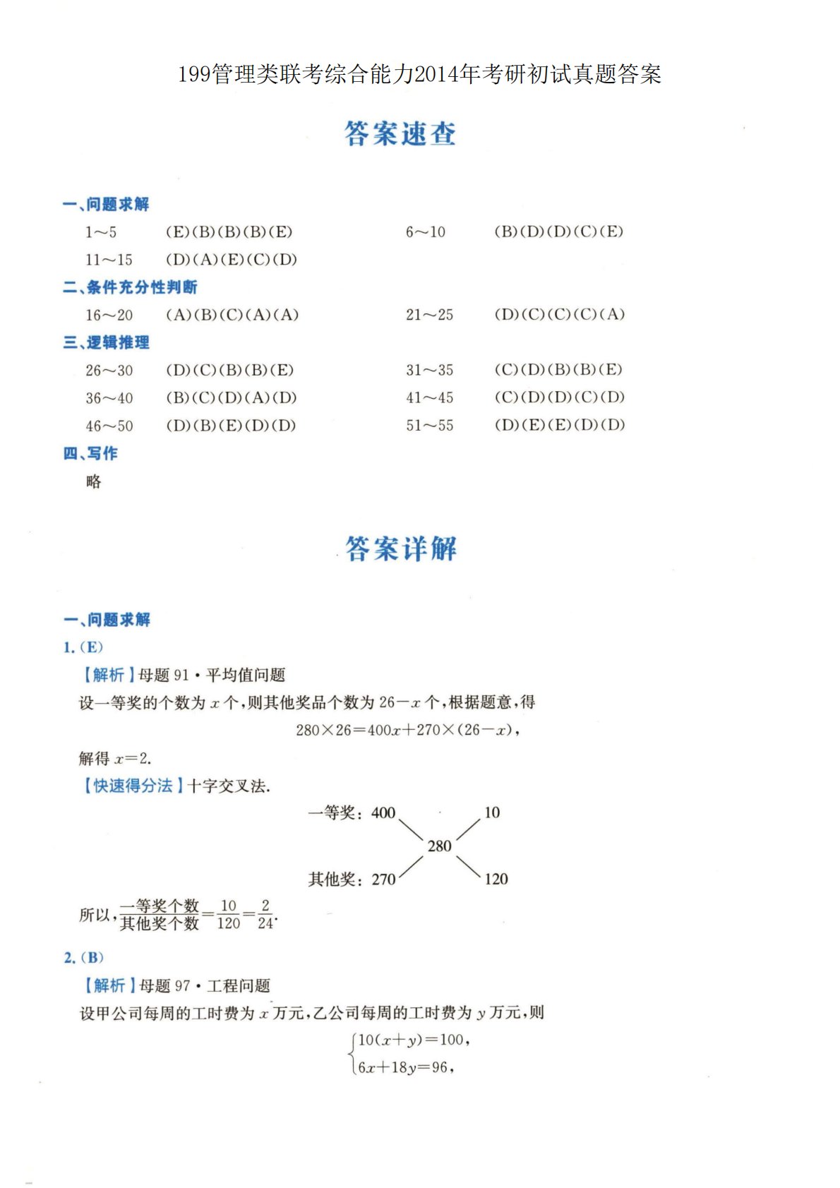 199管理类联考综合能力2014年考研初试真题答案