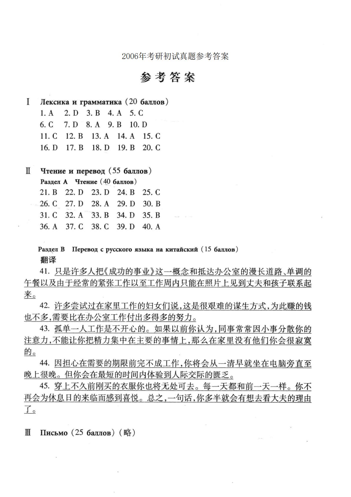 202俄语2006年考研初试真题参考答案