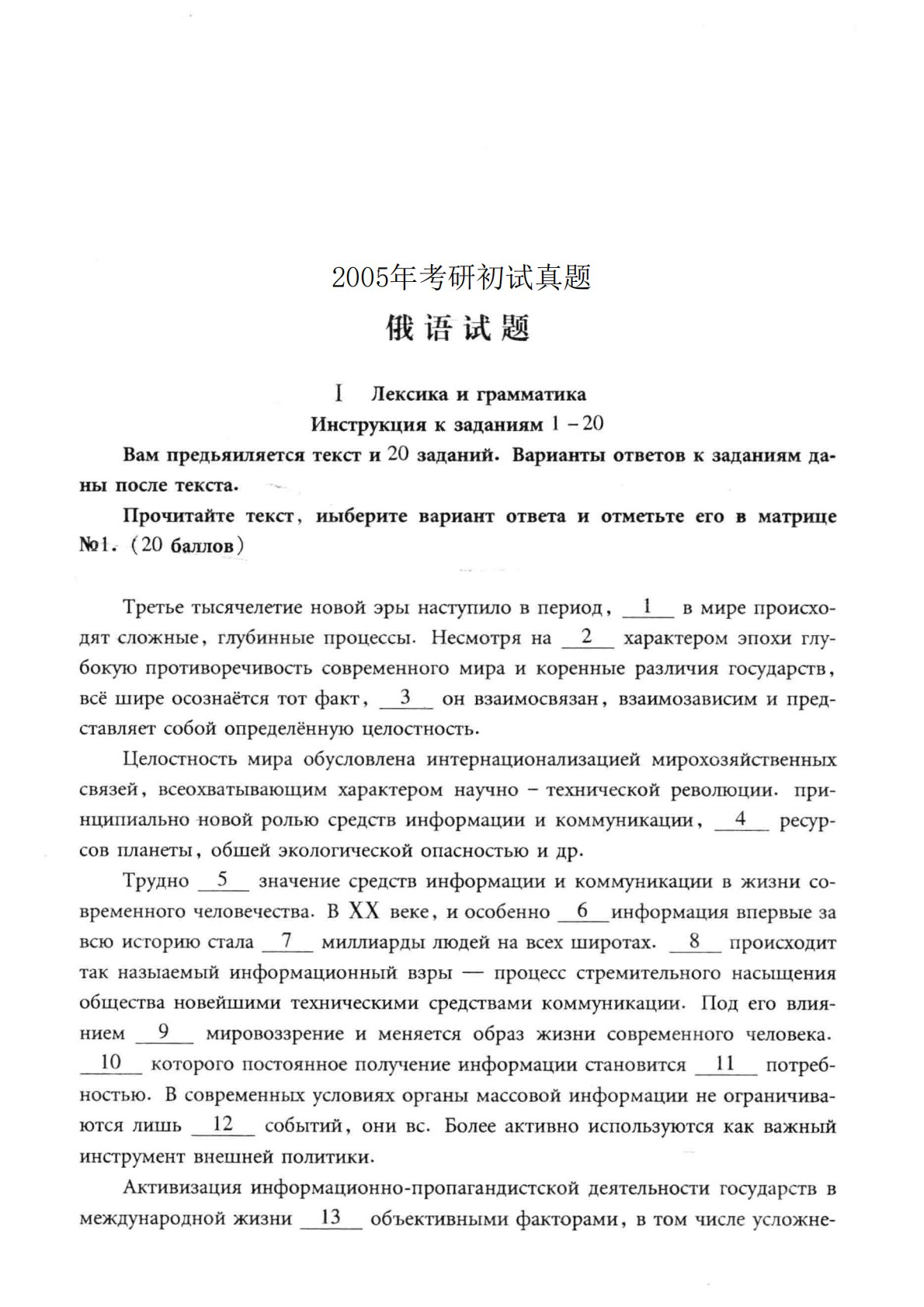 202俄语2005年考研初试真题
