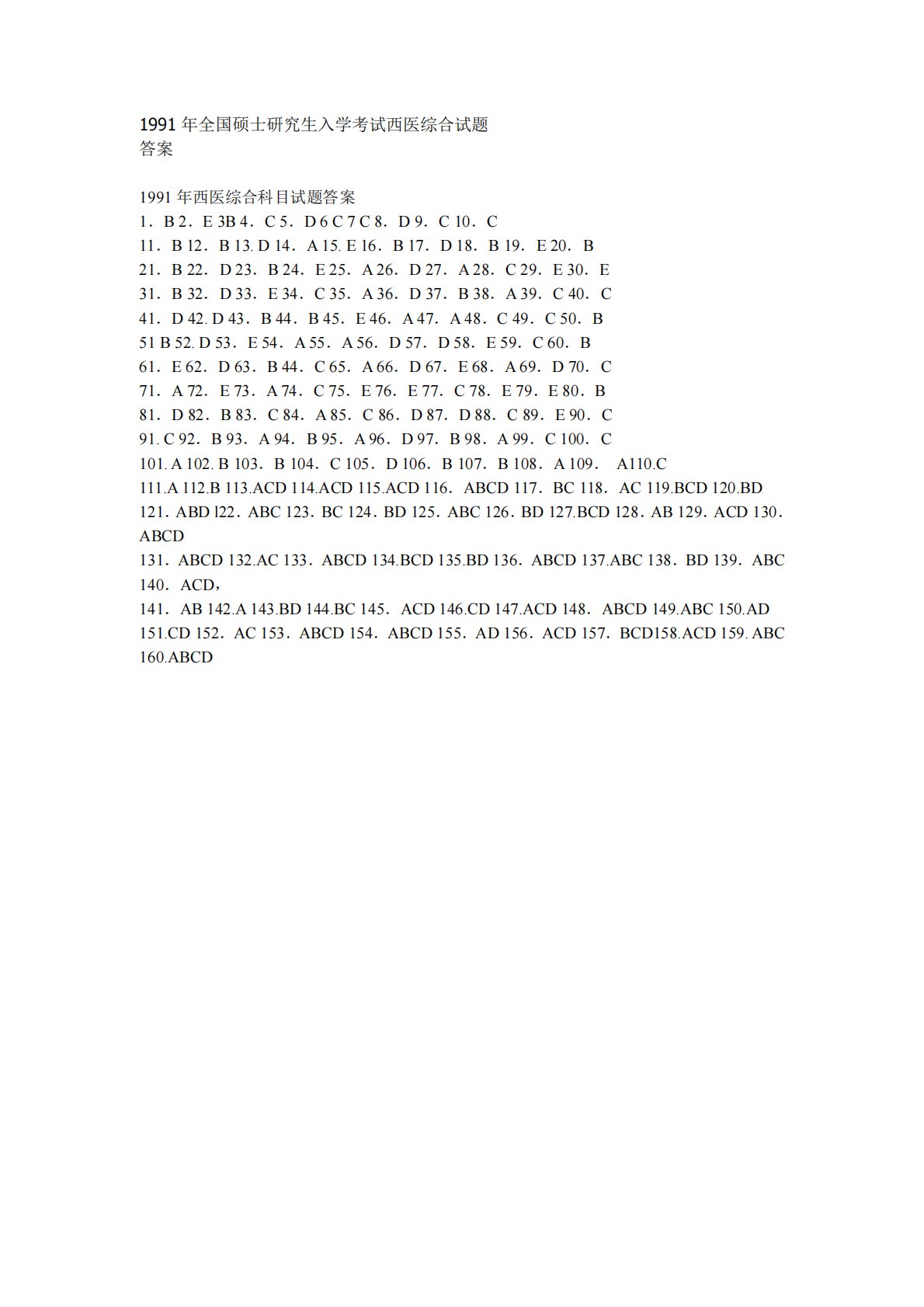 306西医综合1991年真题答案