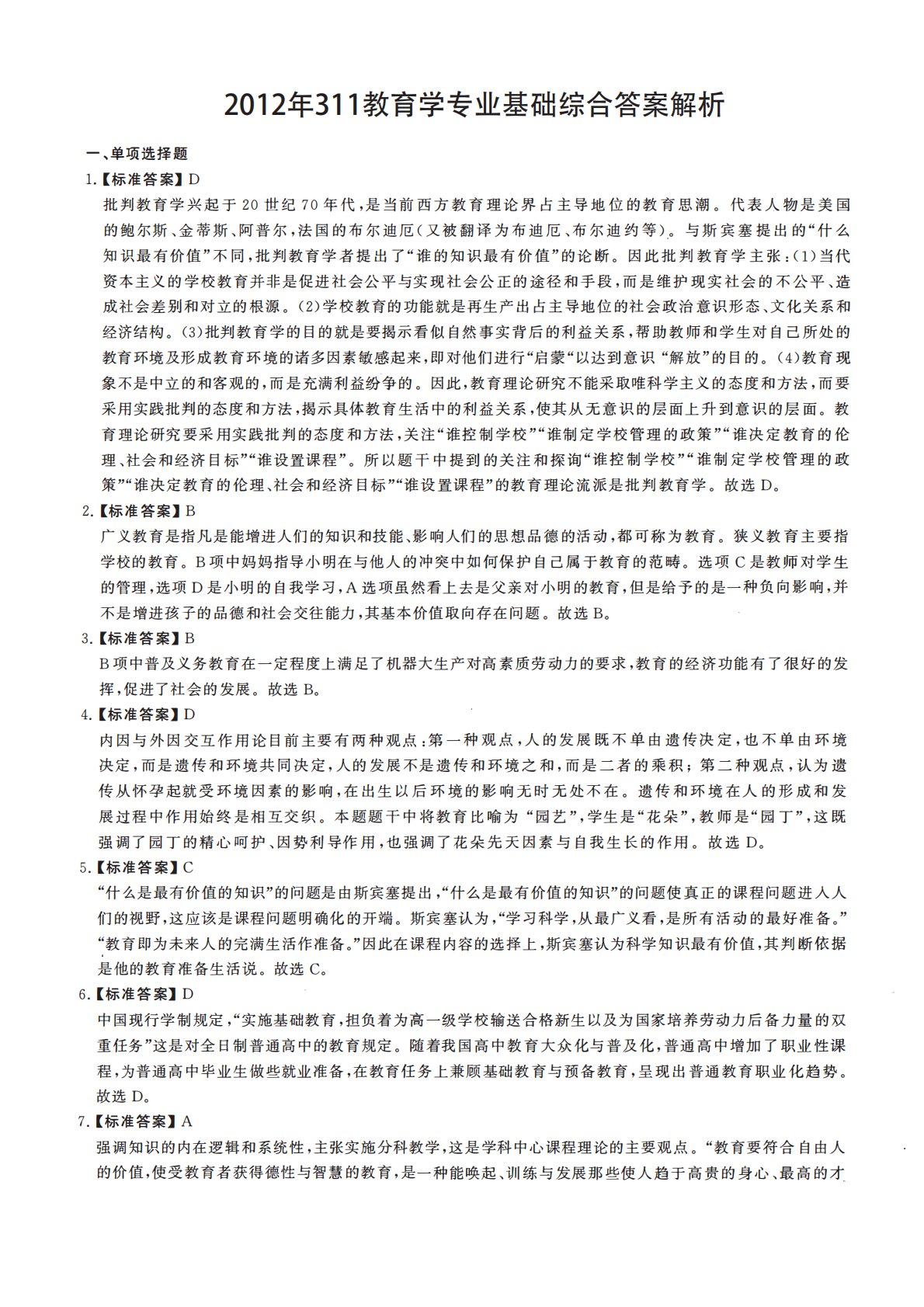 311教育学专业基础综合2012年考研初试真题答案解析