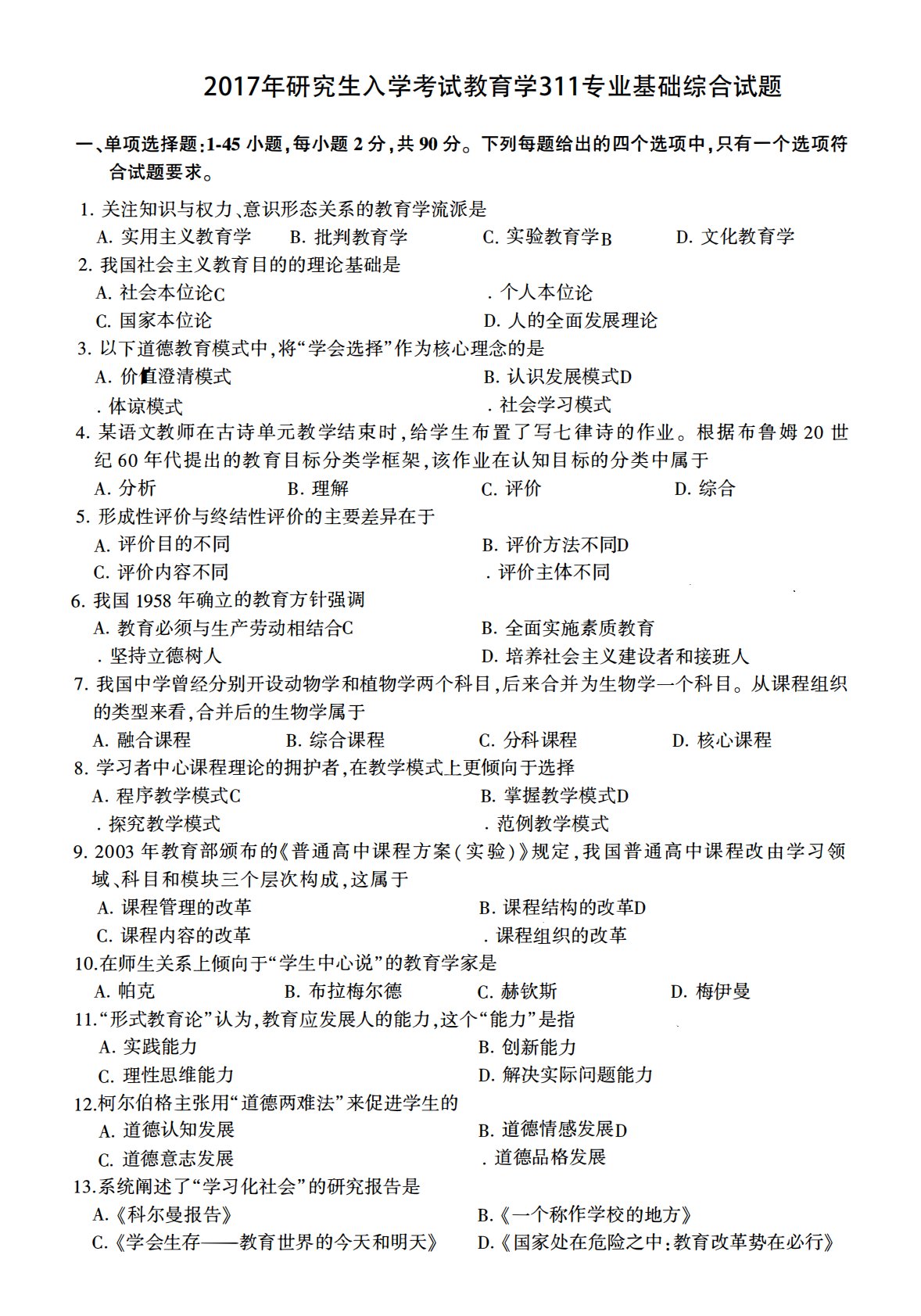 311教育学专业基础综合2017年考研初试真题