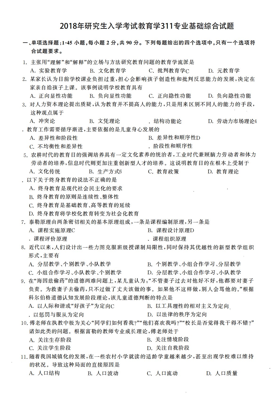 311教育学专业基础综合2018年考研初试真题