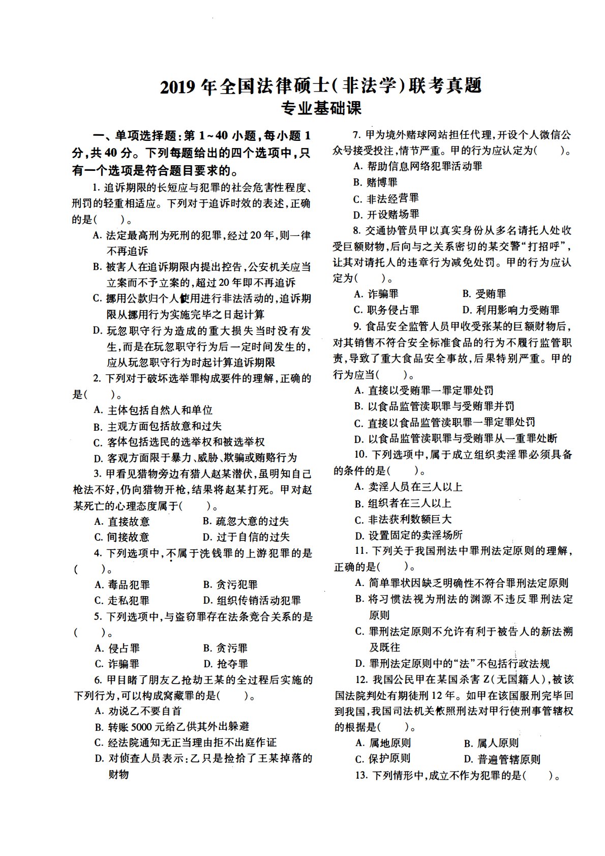 398法律硕士专业基础(非法学)2019年考研初试真题