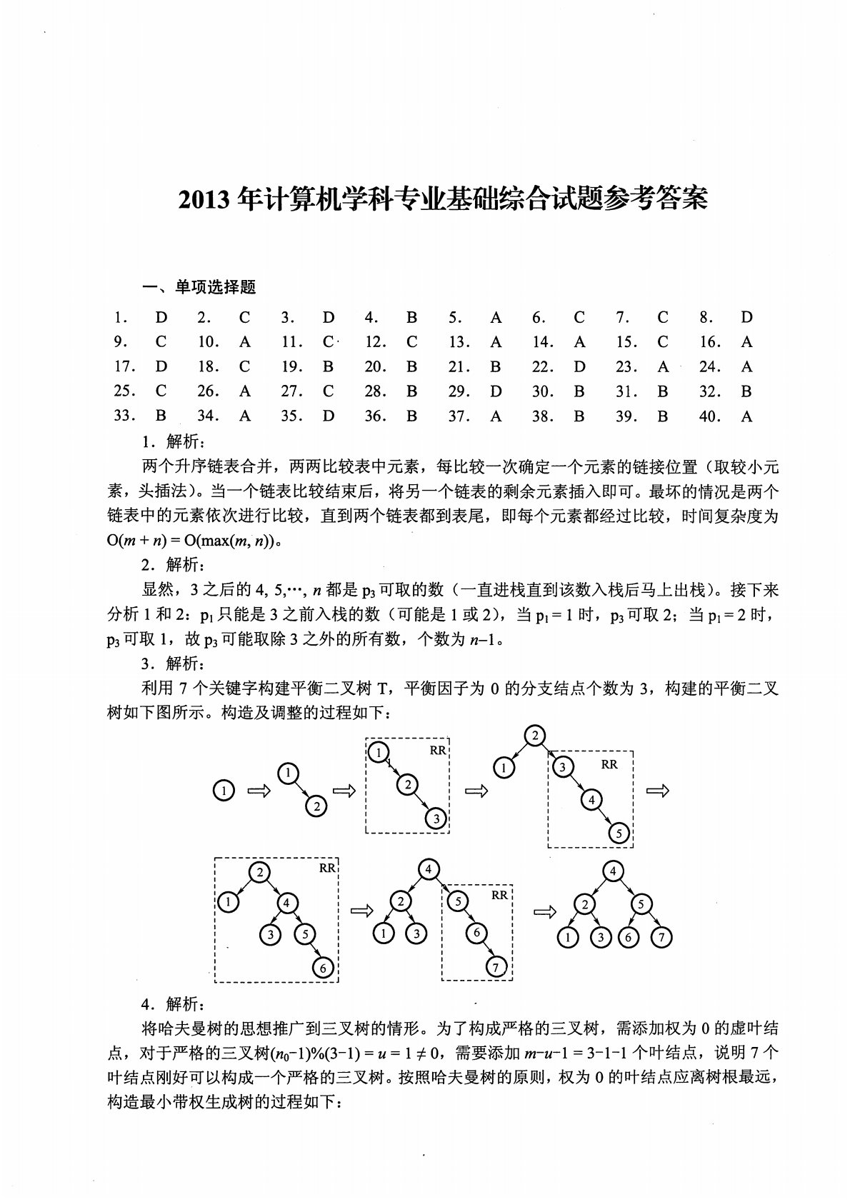408计算机学科专业基础2013年考研初试真题参考答案