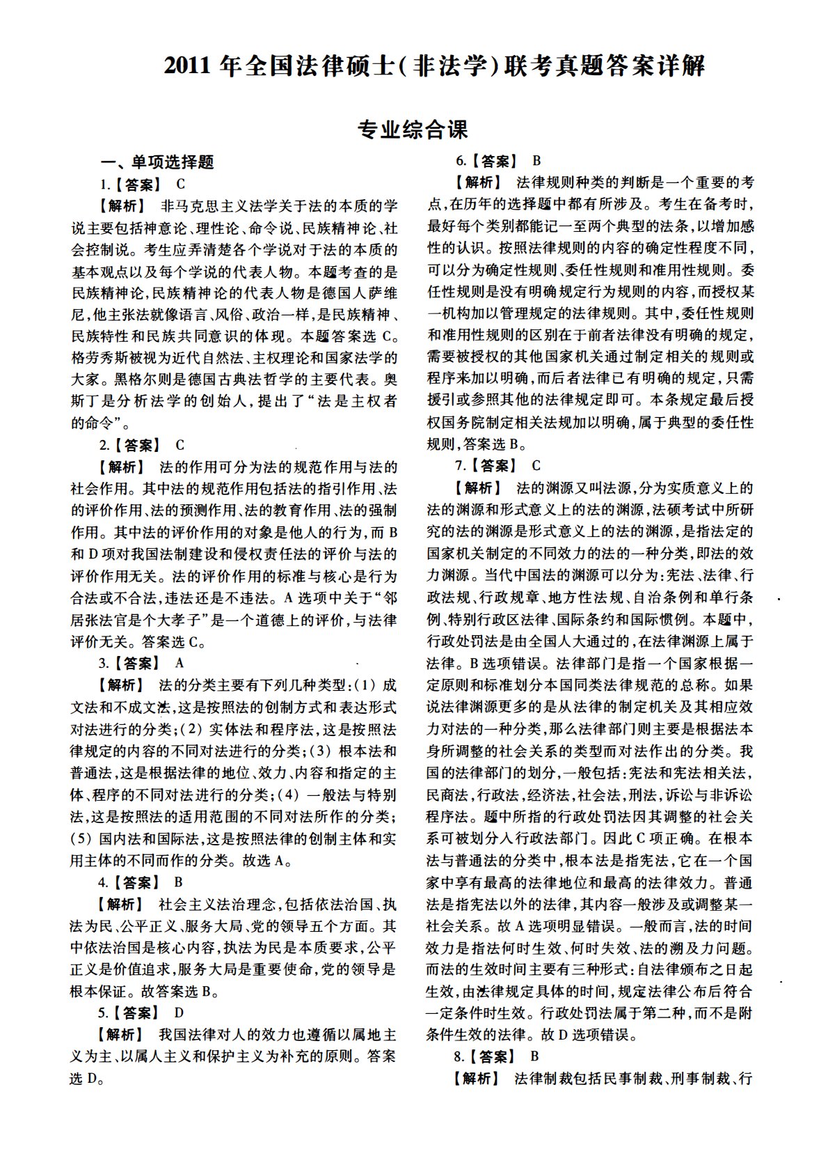 498法律硕士综合(非法学)2011年考研初试真题答案