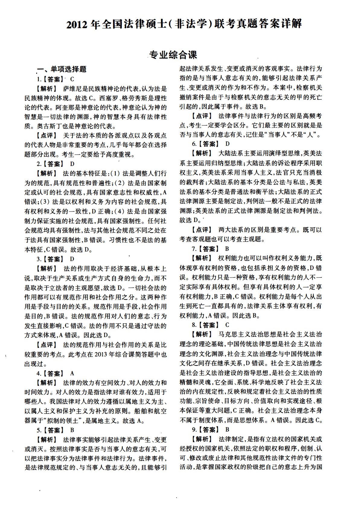 498法律硕士综合(非法学)2012年考研初试真题答案