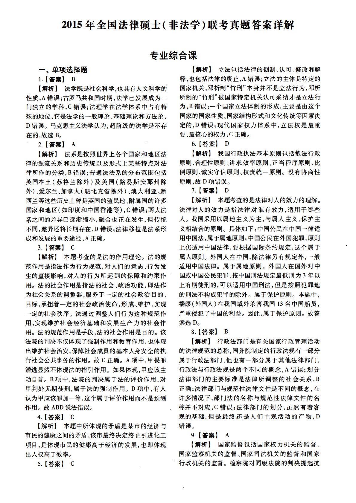 498法律硕士综合(非法学)2015年考研初试真题答案