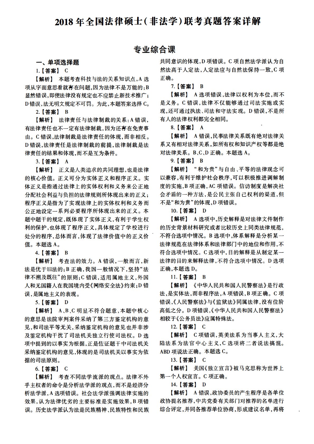 498法律硕士综合(非法学)2018年考研初试真题答案