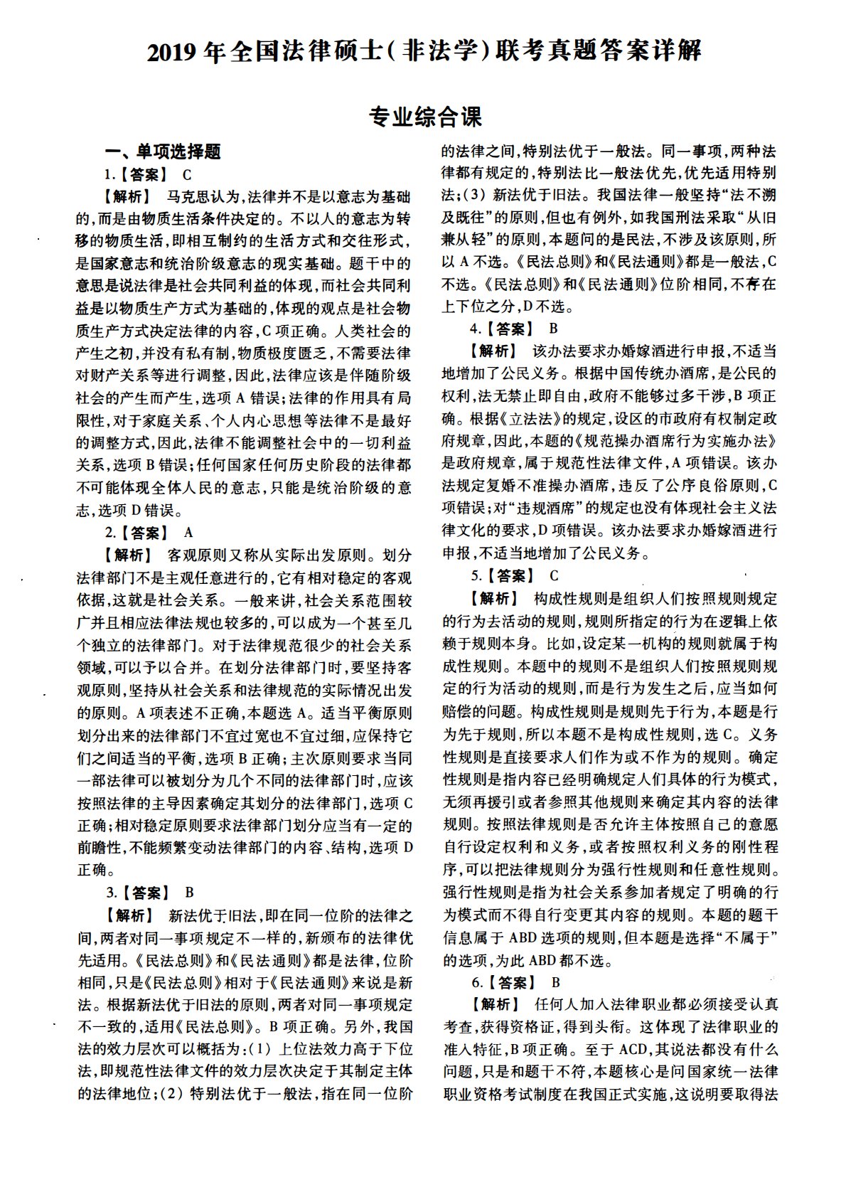 498法律硕士综合(非法学)2019年考研初试真题答案