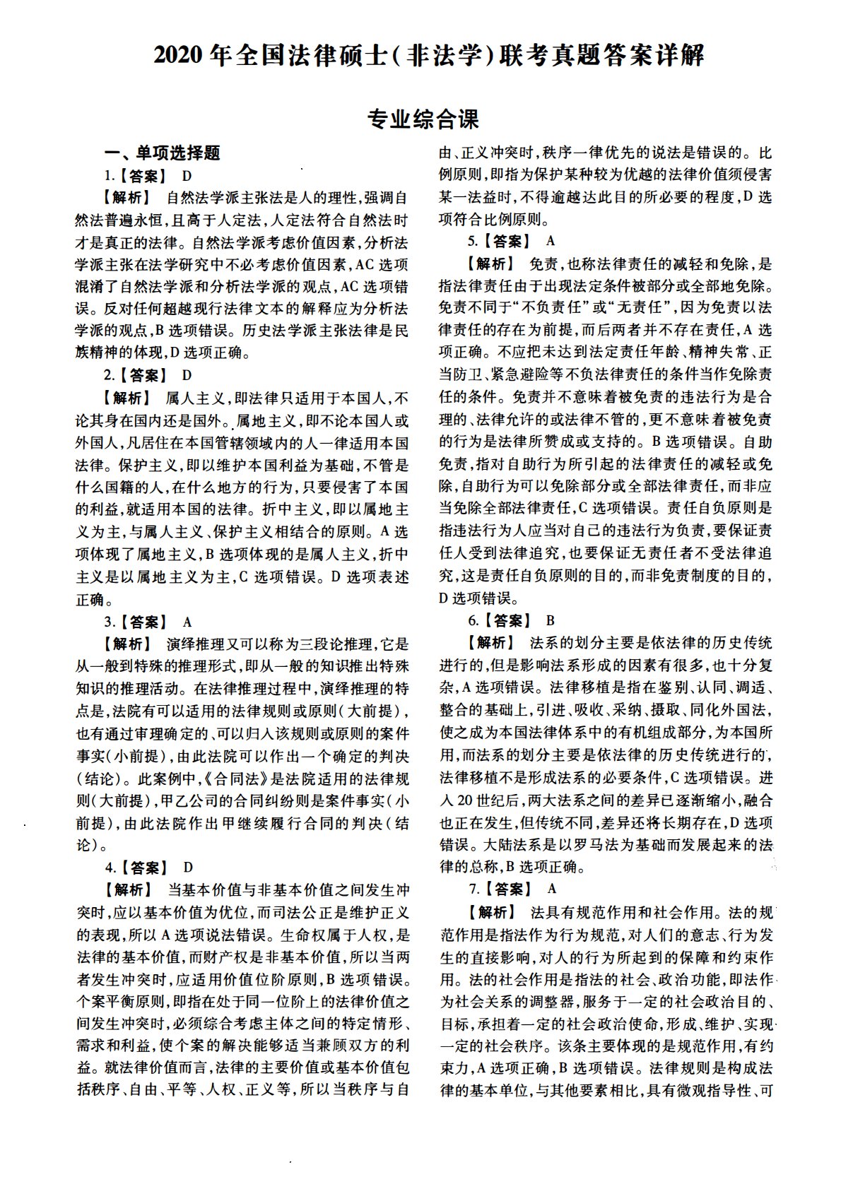 498法律硕士综合(非法学)2020年考研初试真题答案