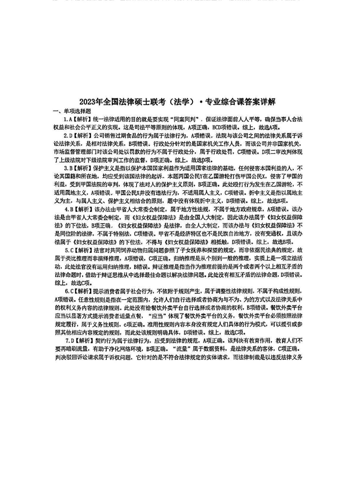 497法律硕士综合(法学)2023年真题