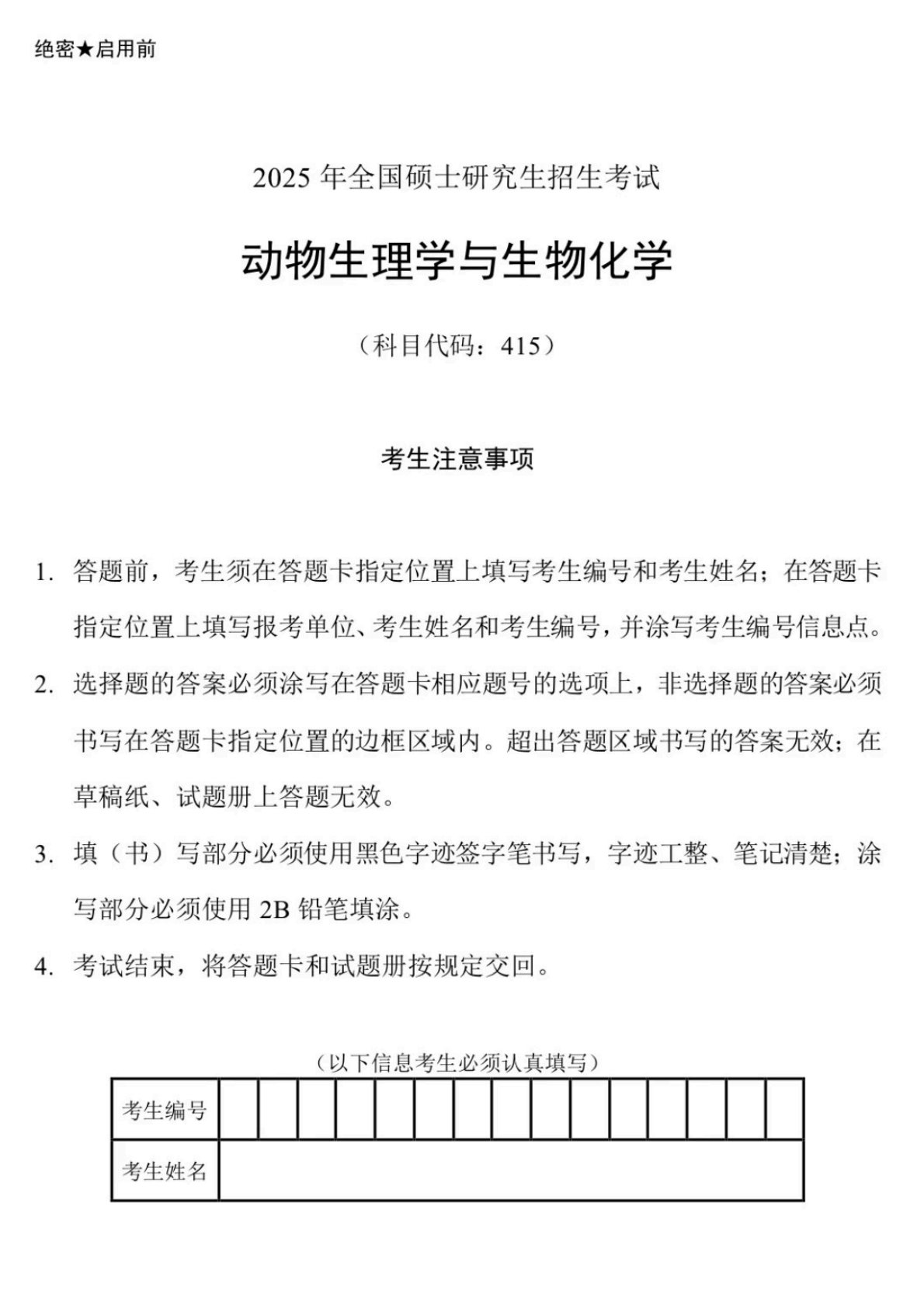 415动物生理与生物化学2025年真题