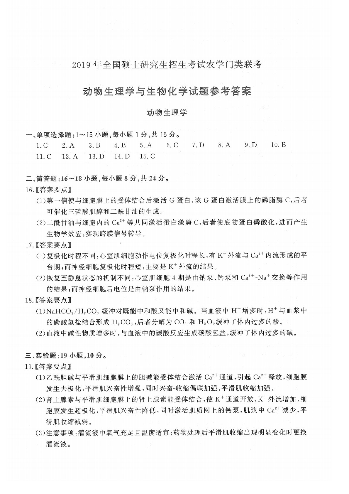 415动物生理与生物化学2019年考研初试真题参考答案