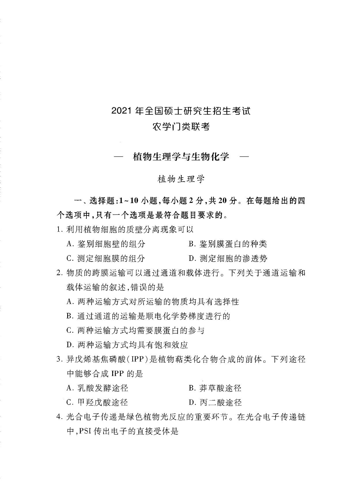 414植物生理与生物化学2021年考研初试真题
