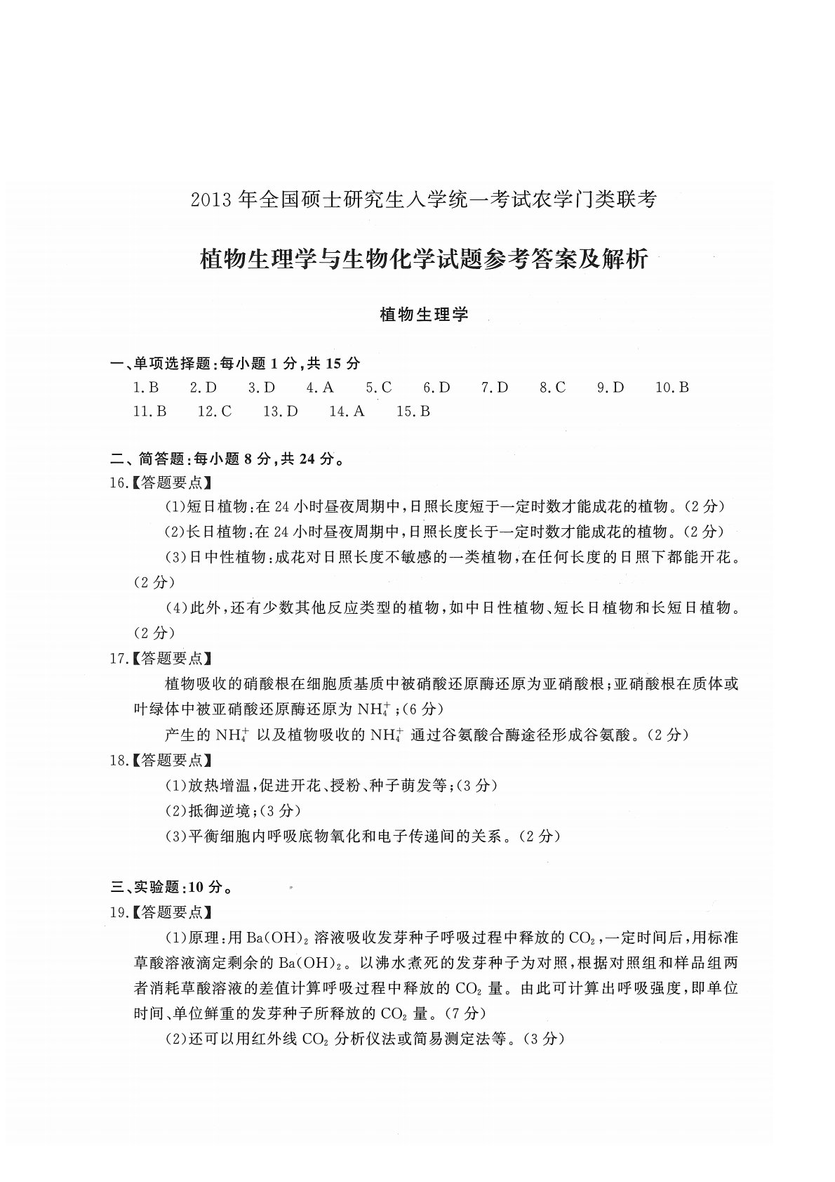 414植物生理与生物化学2013年考研初试真题参考答案