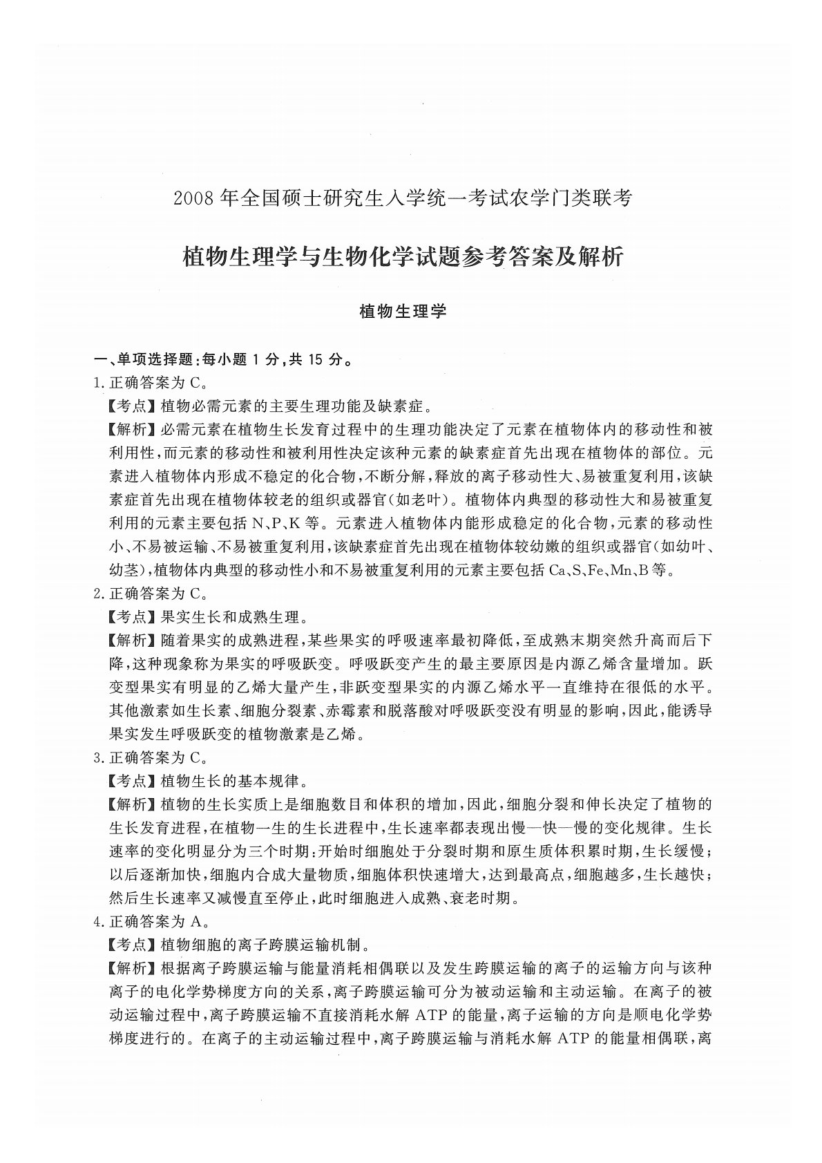 414植物生理与生物化学2008年考研初试真题参考答案