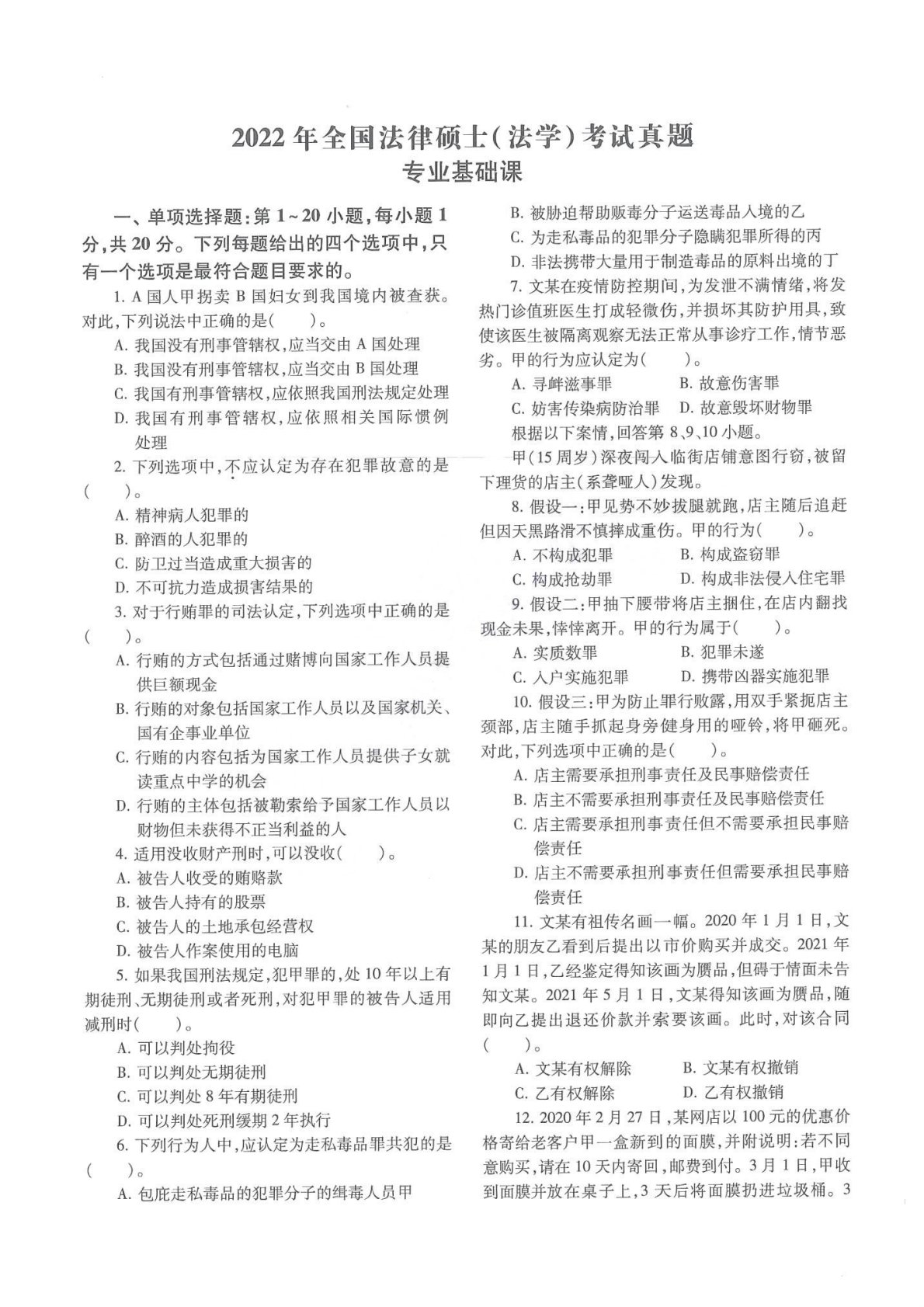 397法律硕士专业基础(法学)2022年真题