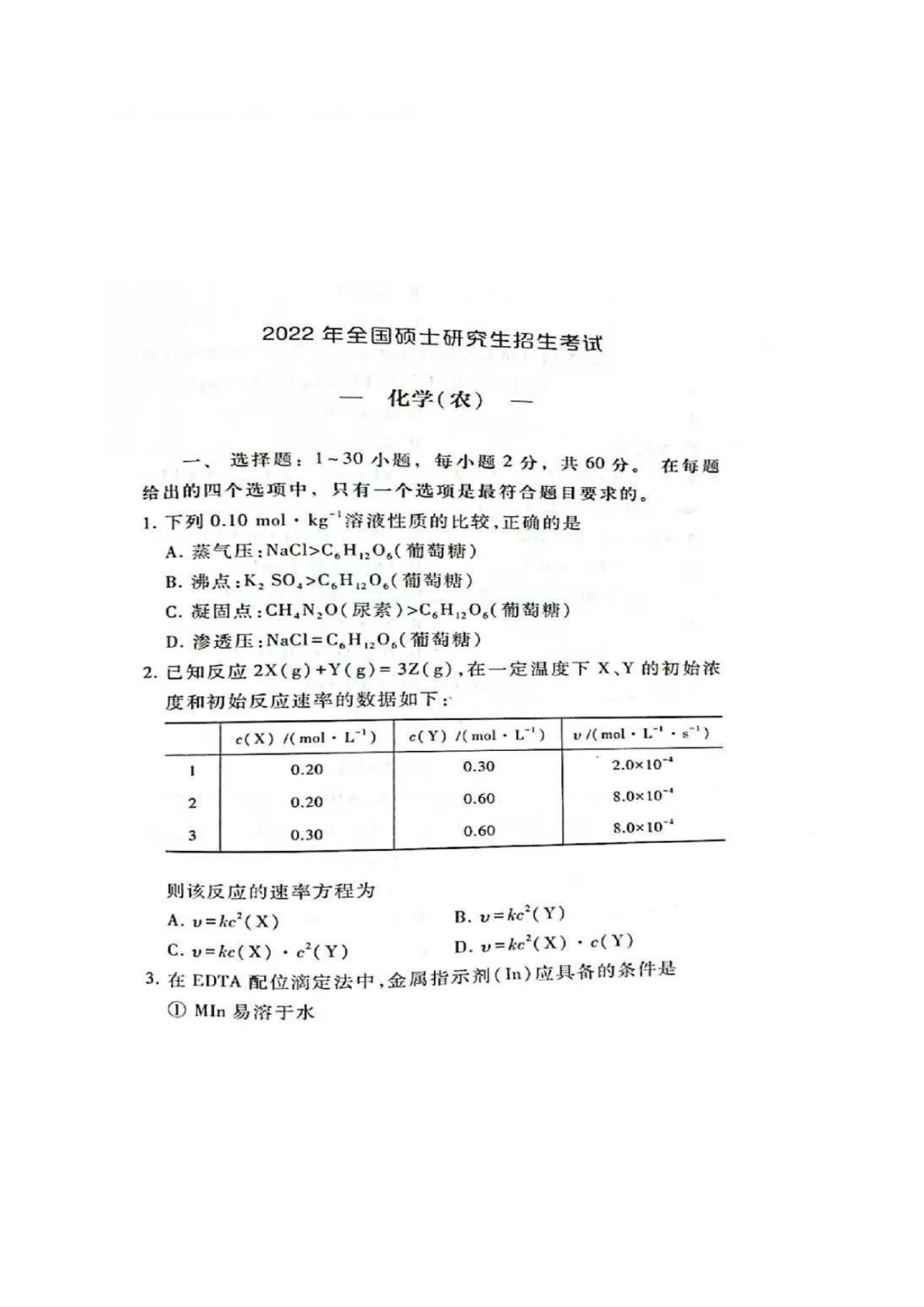 315化学2022年考研初试真题