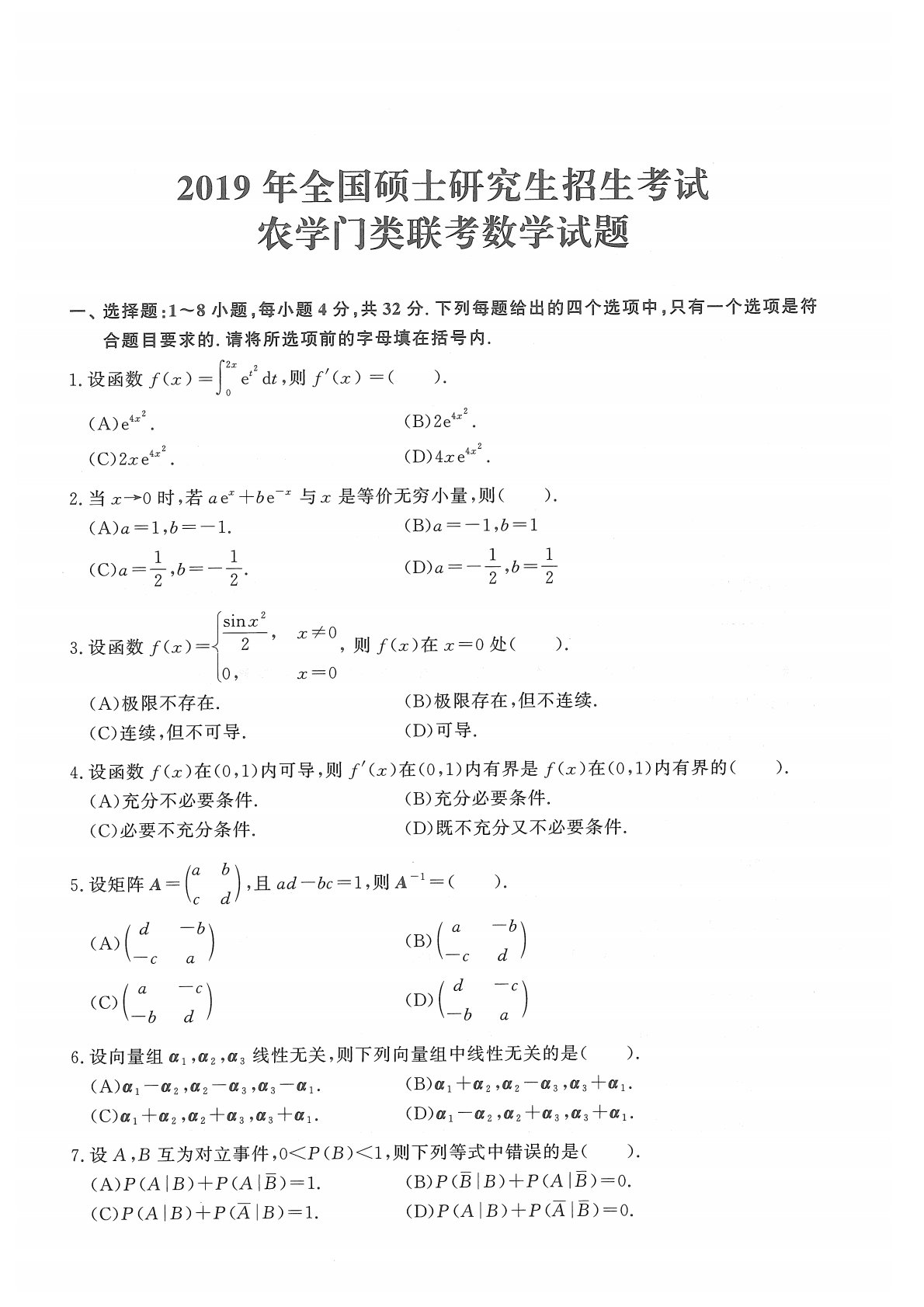 314数学2019年考研初试真题