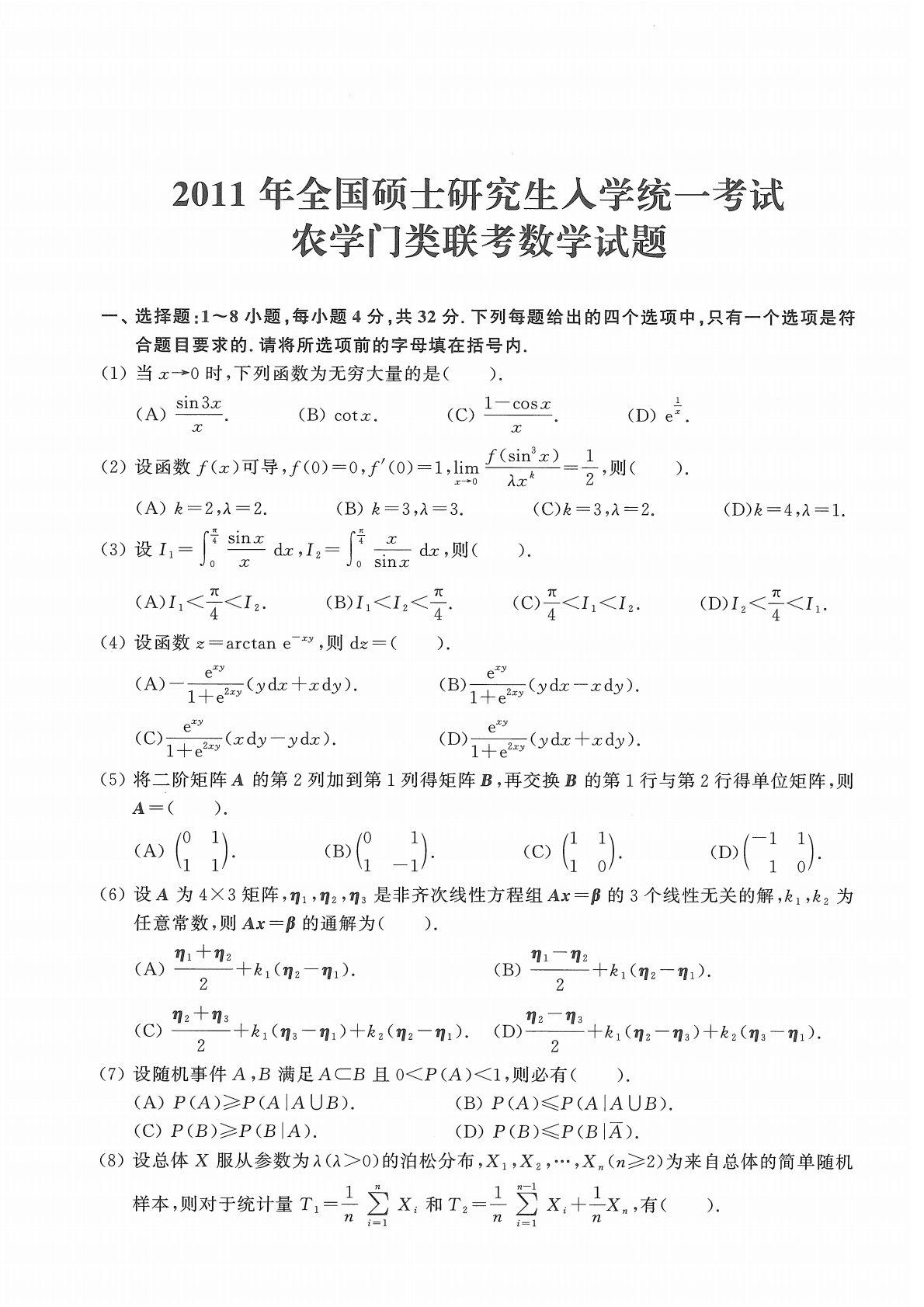 314数学2011年考研初试真题