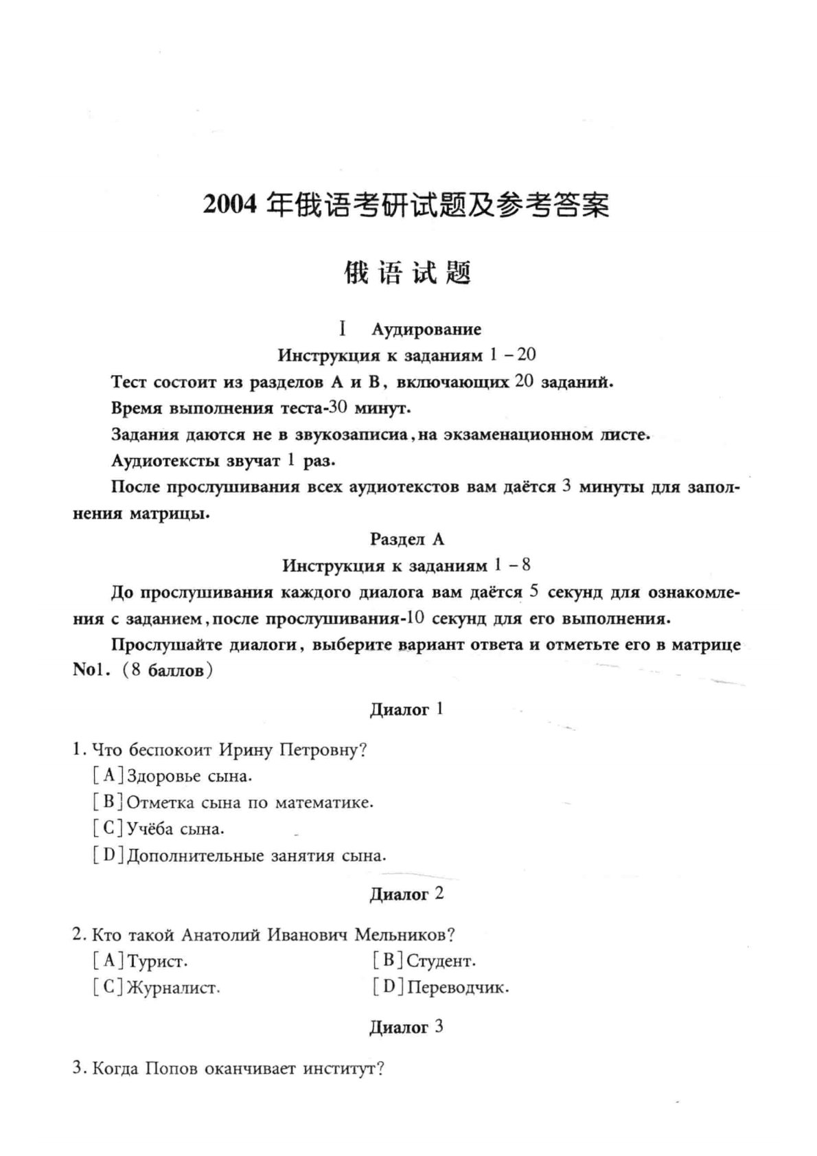 202俄语2004年考研初试真题