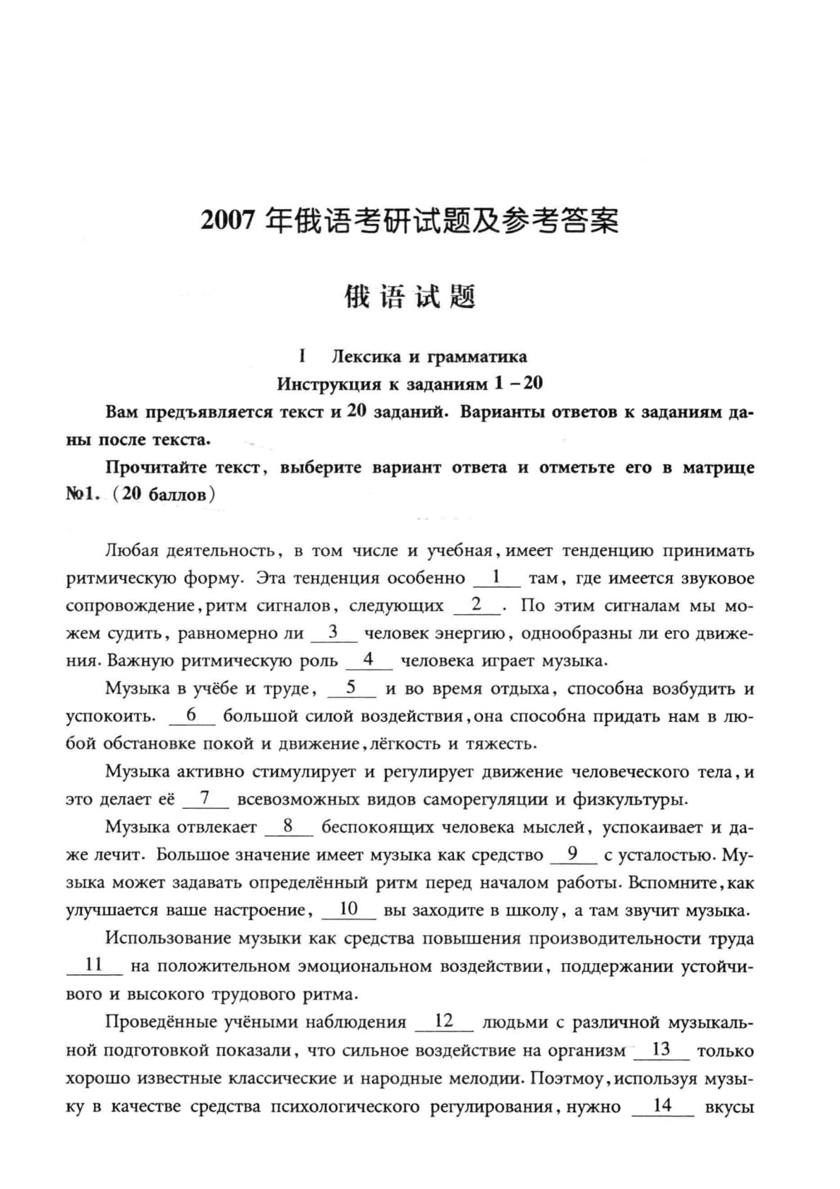 202俄语2007年考研初试真题