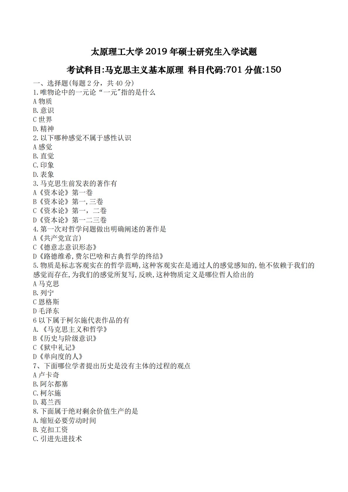 北京工业大学812材料力学2022年真题VIP专享