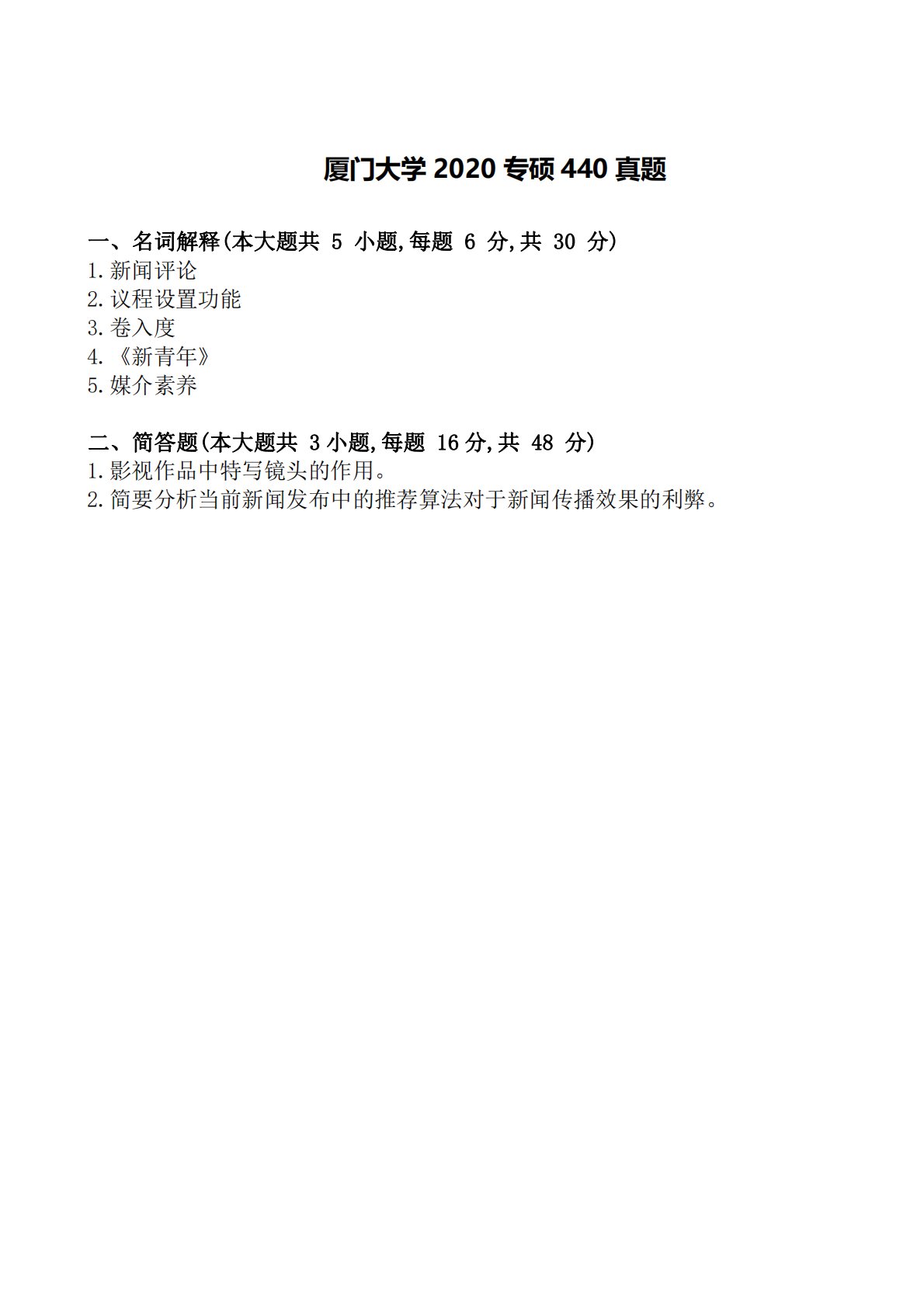 厦门大学440新闻与传播专业基础2020年真题.pdf