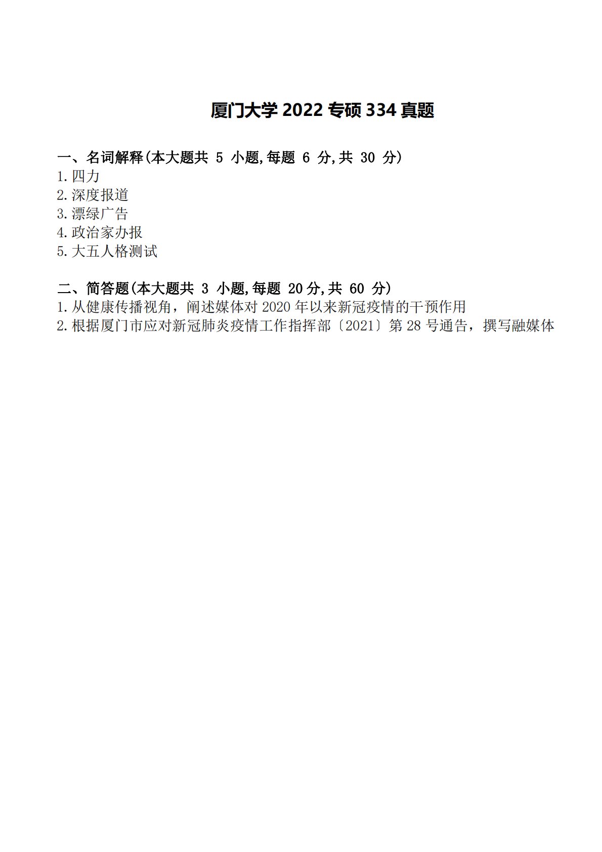 厦门大学334新闻与传播专业综合能力2022年真题.pdf