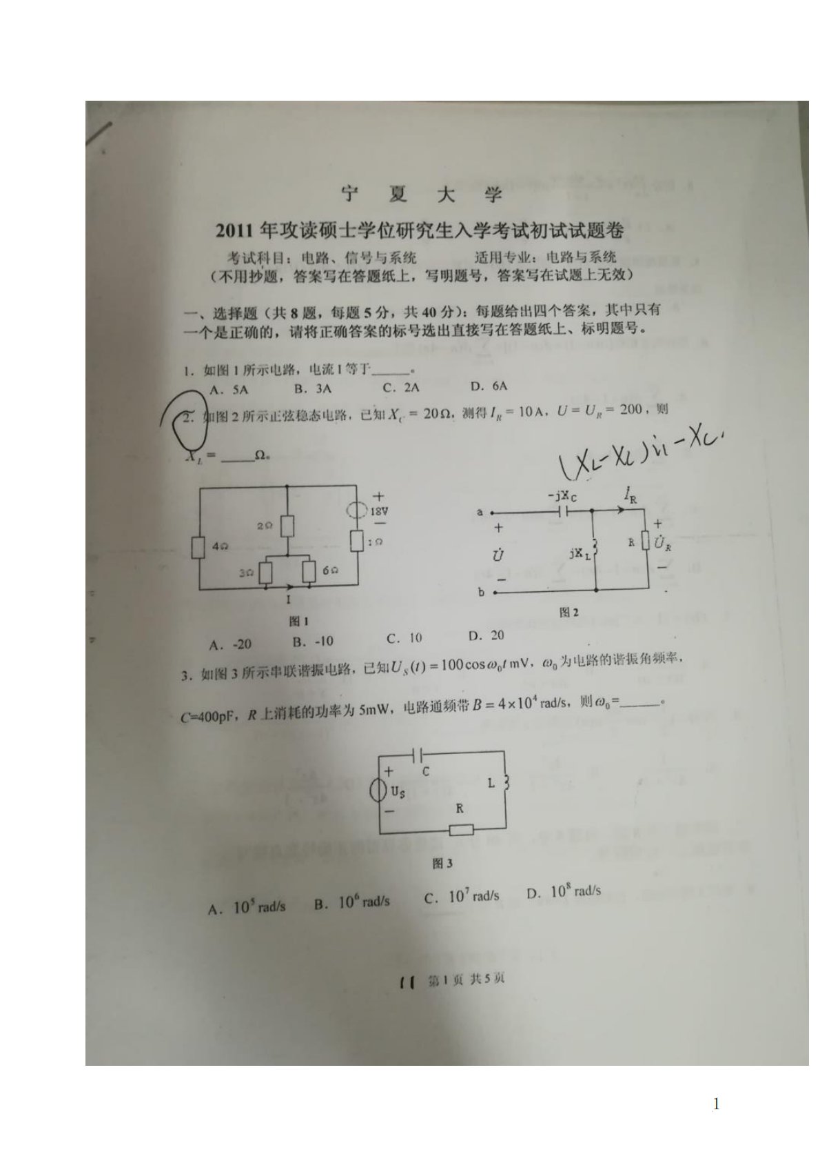 宁夏大学电路手写版答案