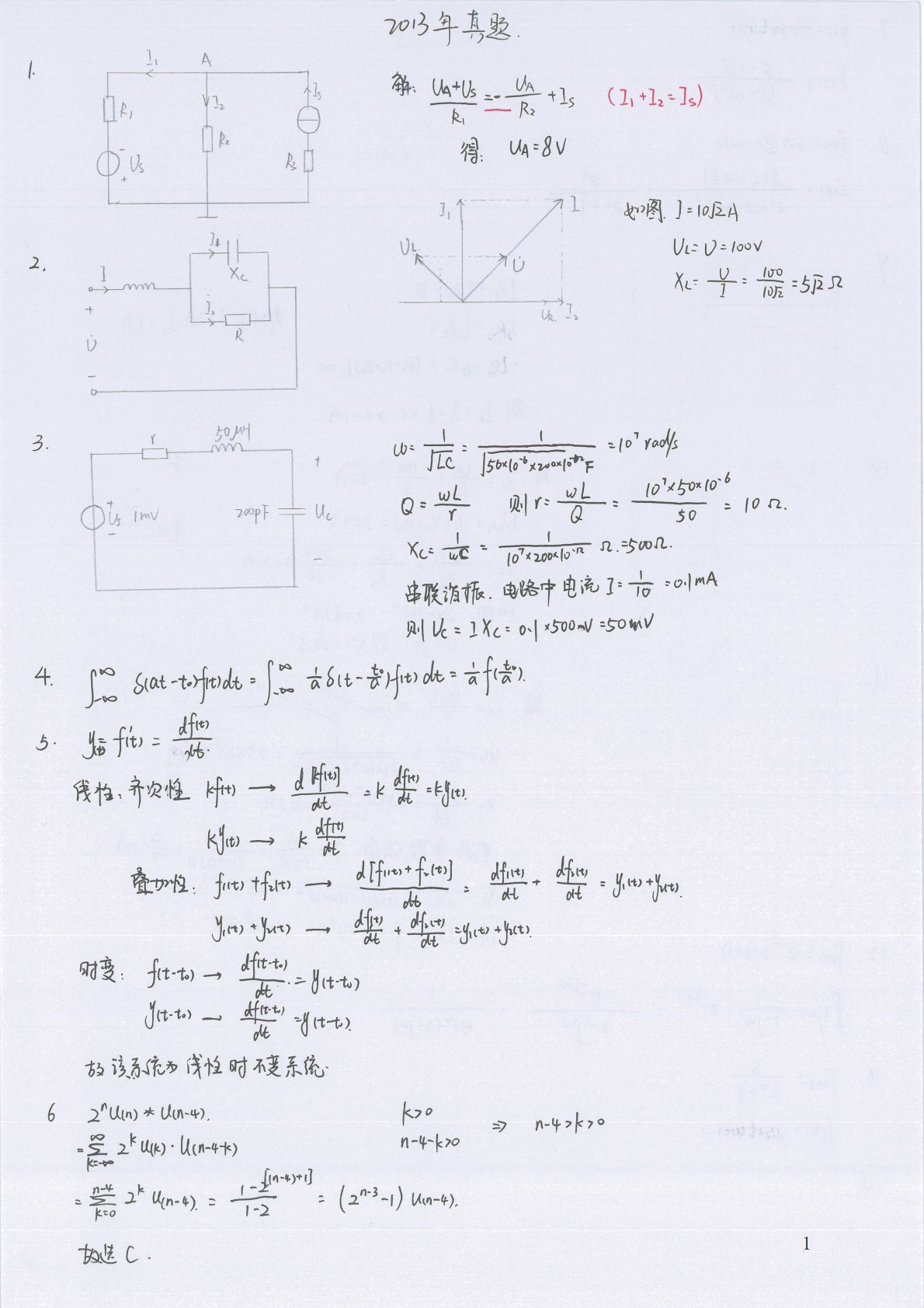 宁夏大学电路手写版答案