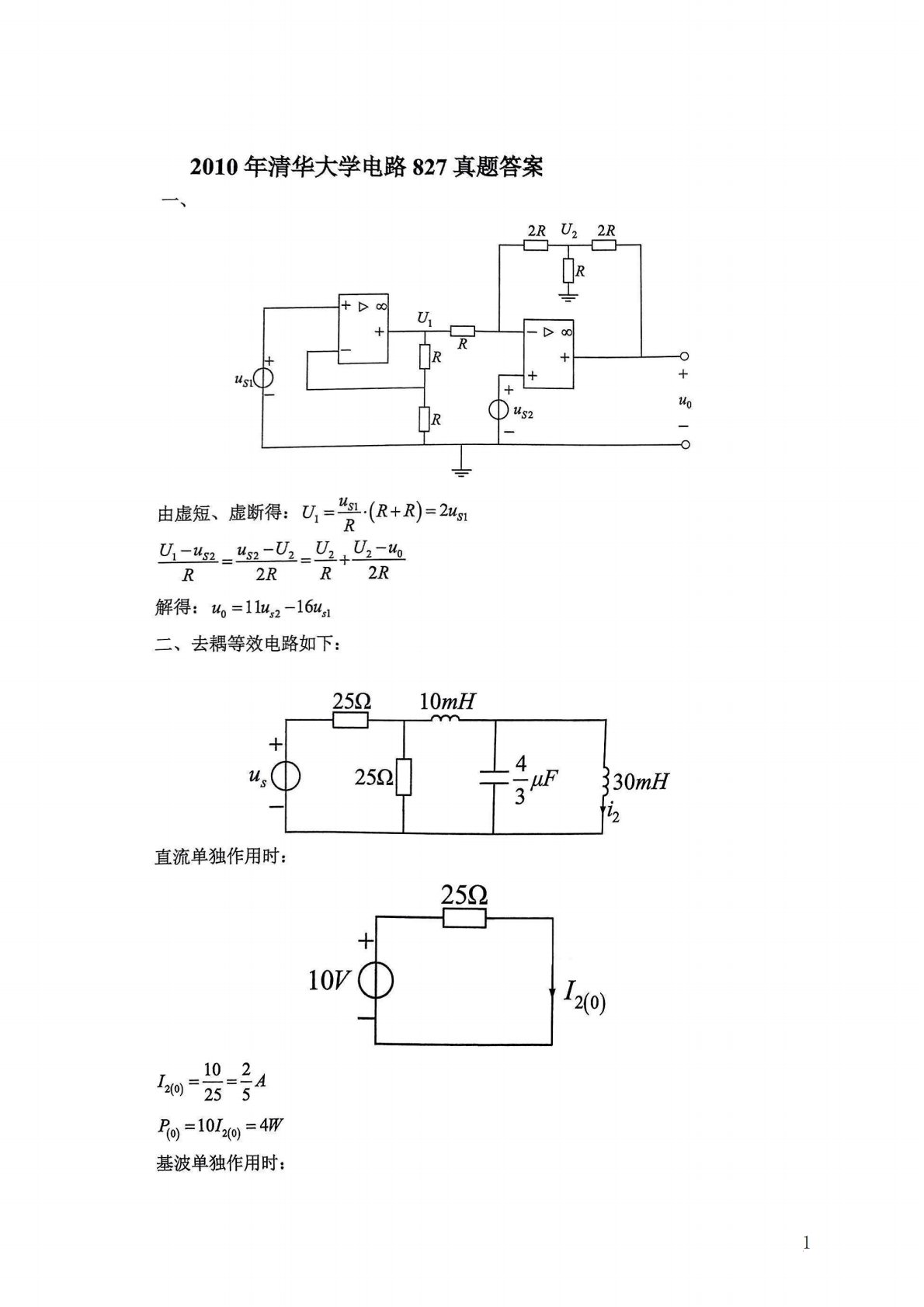 清华大学827电路原理2009年真题答案