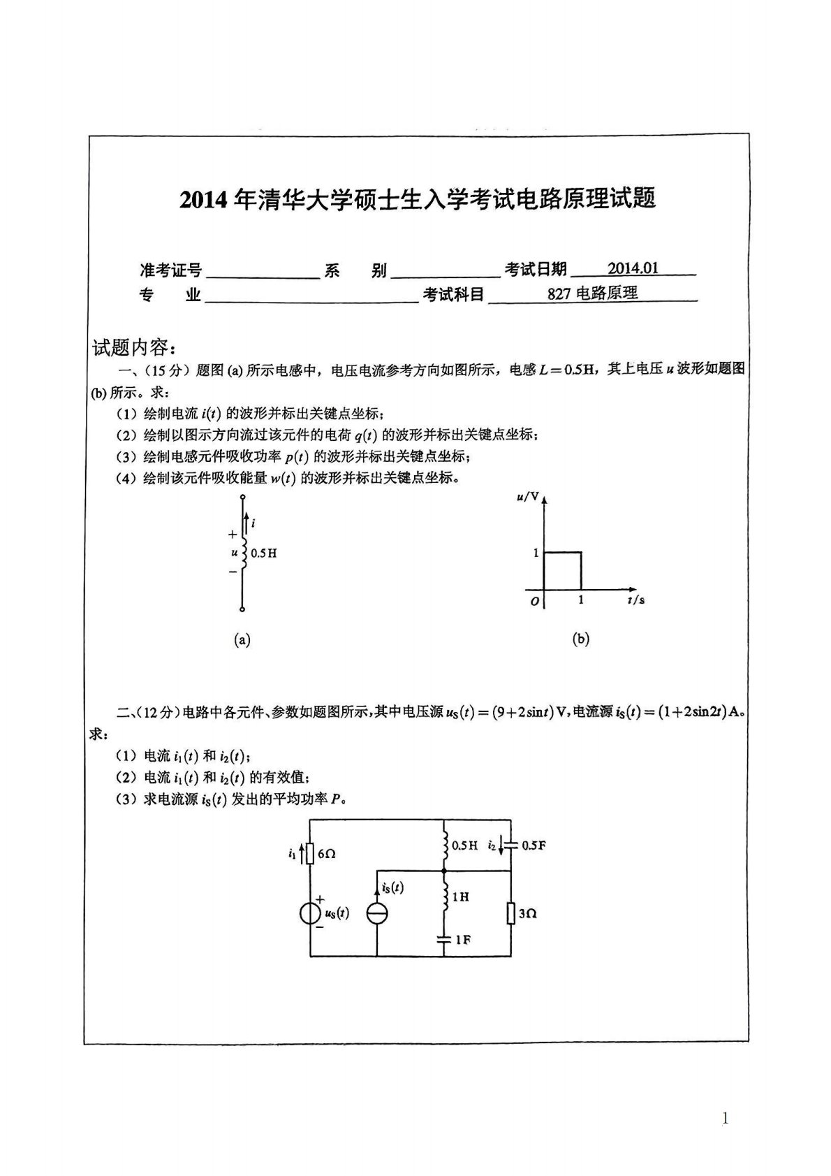 清华大学827电路原理2009年真题答案