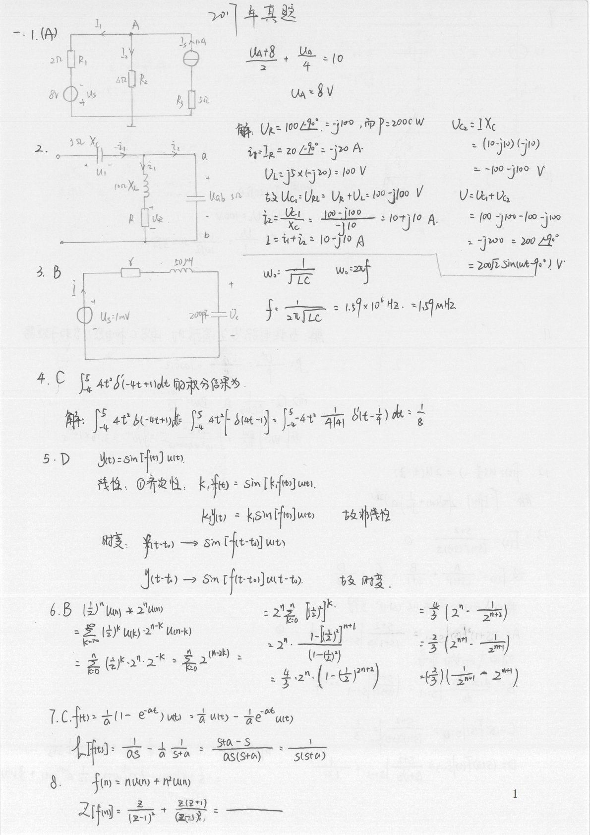 宁夏大学电路手写版答案