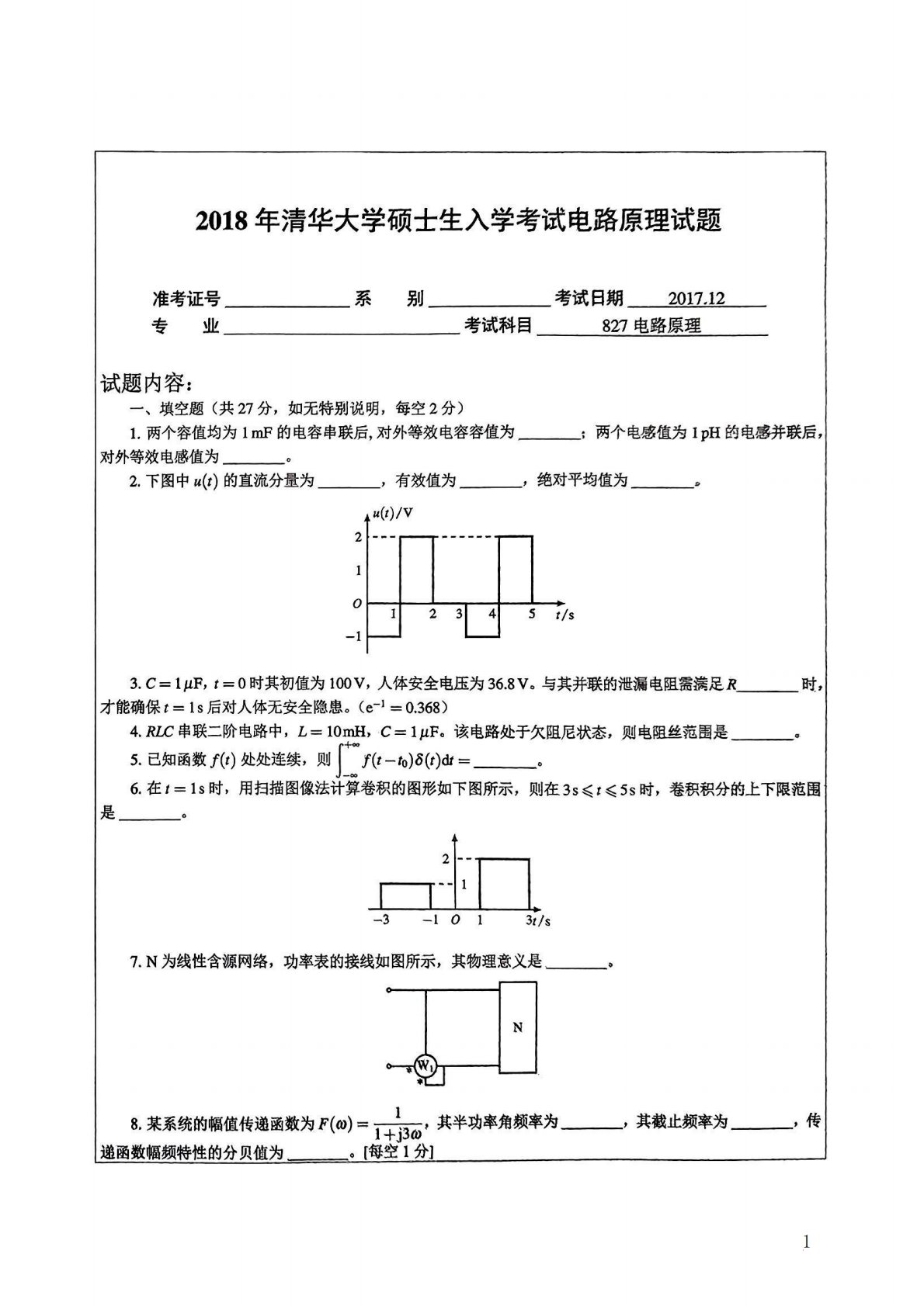 清华大学827电路原理2009年真题答案