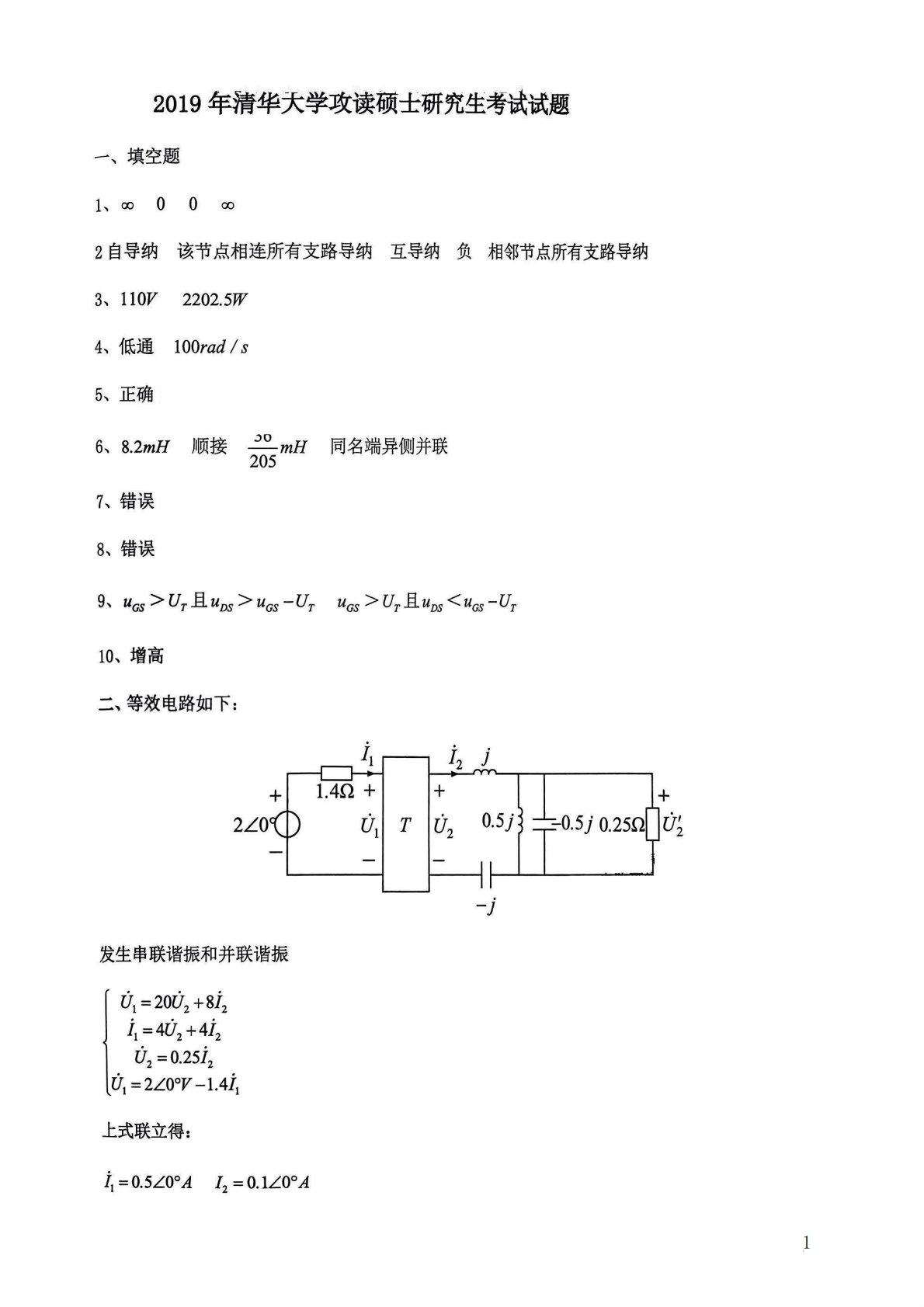 清华大学827电路原理2009年真题答案