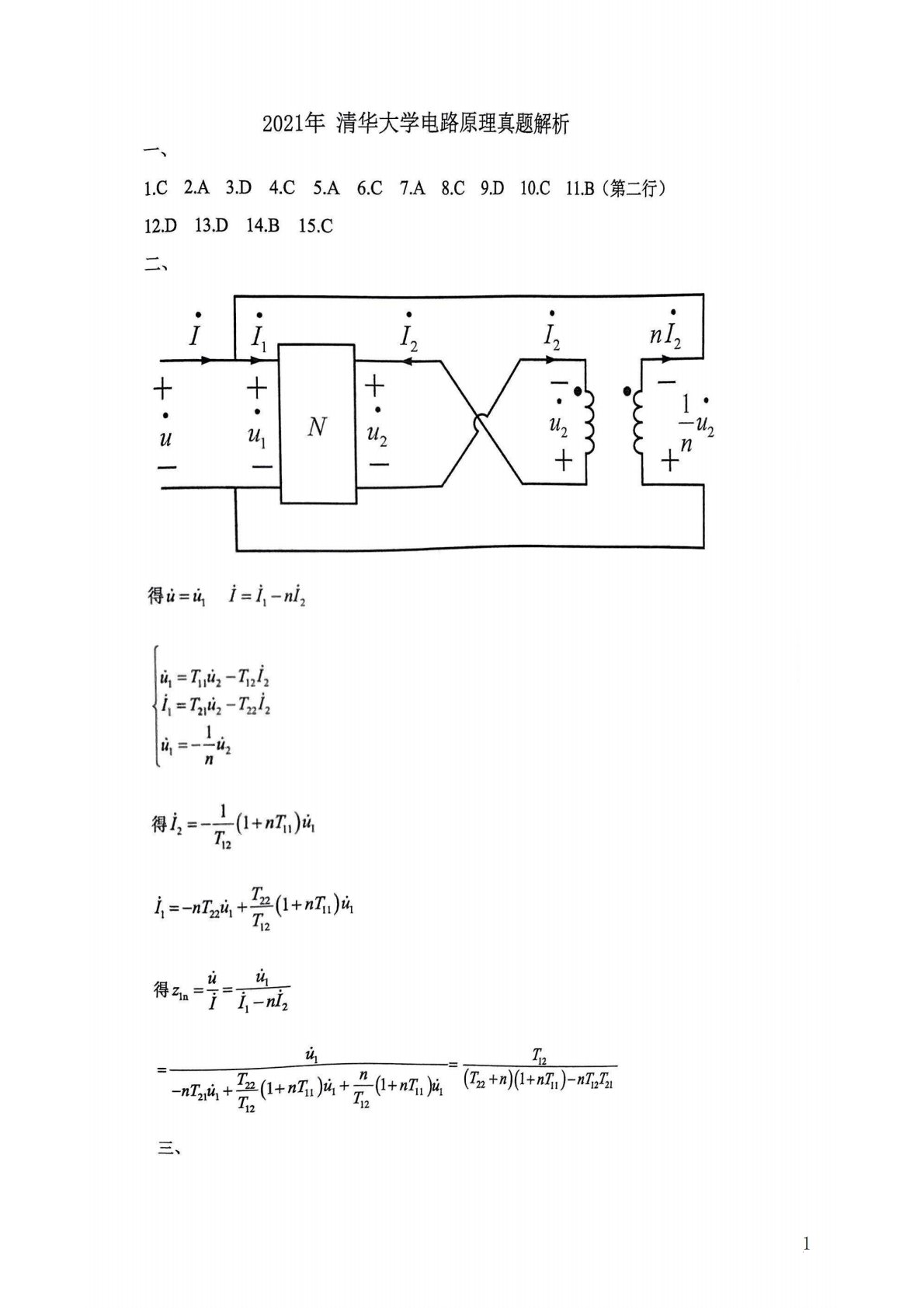 清华大学827电路原理2009年真题答案