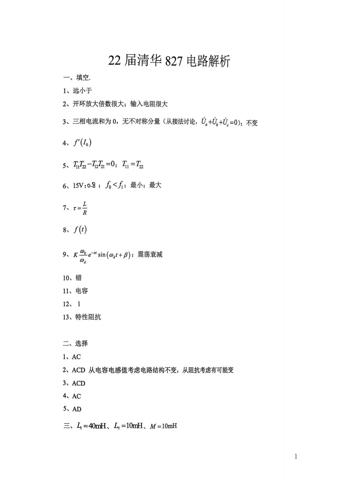 清华大学827电路原理2009年真题答案