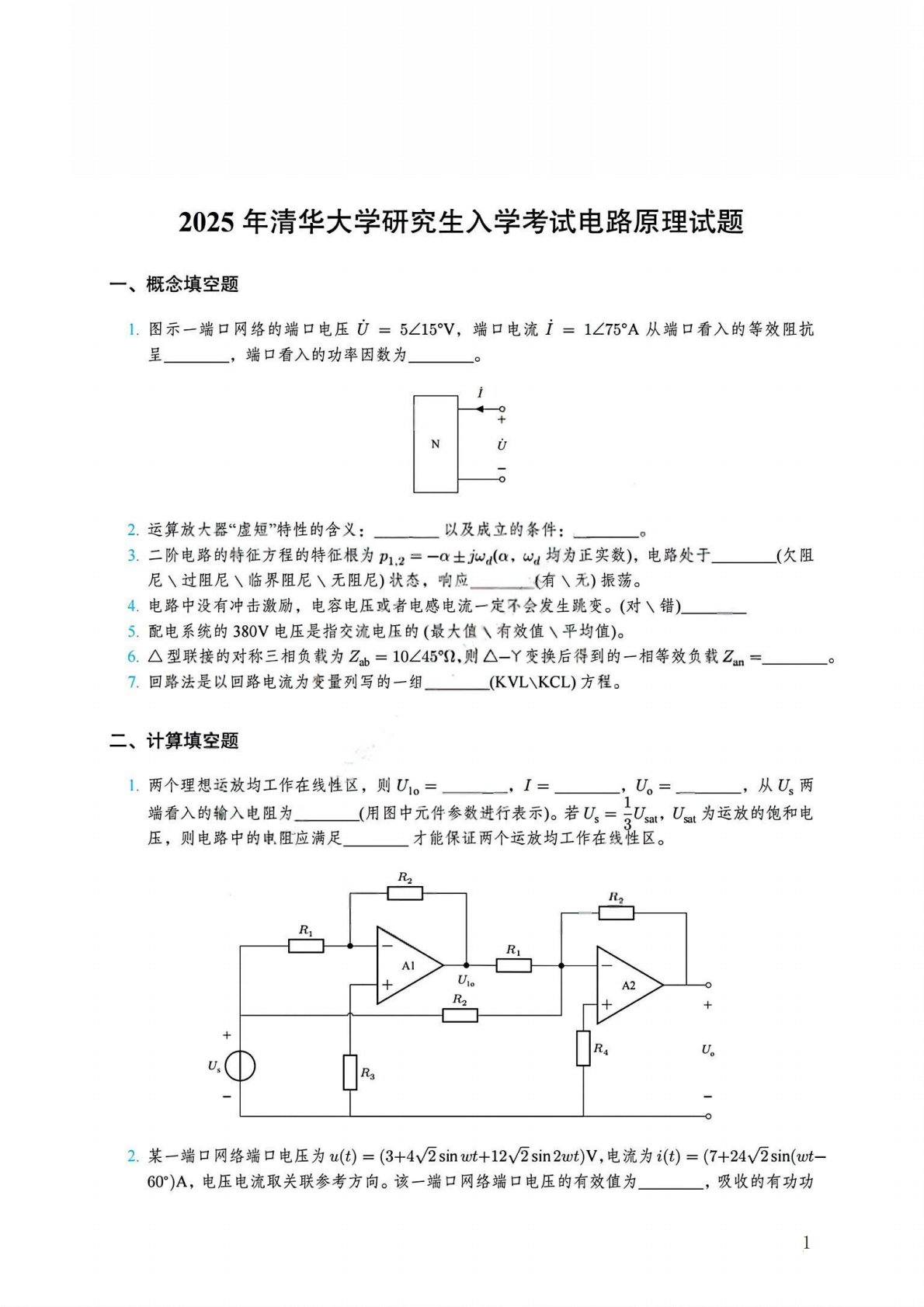 清华大学827电路原理2009年真题答案