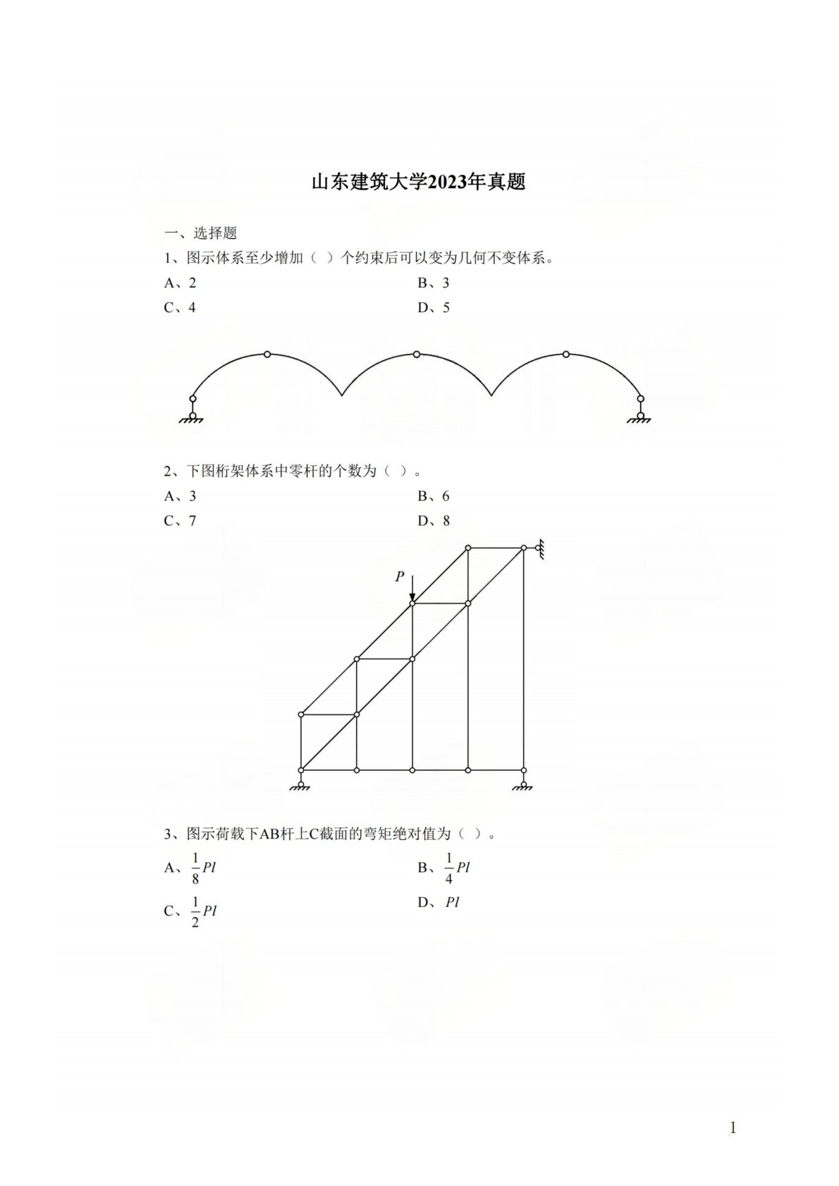 北京工业大学812材料力学2022年真题VIP专享