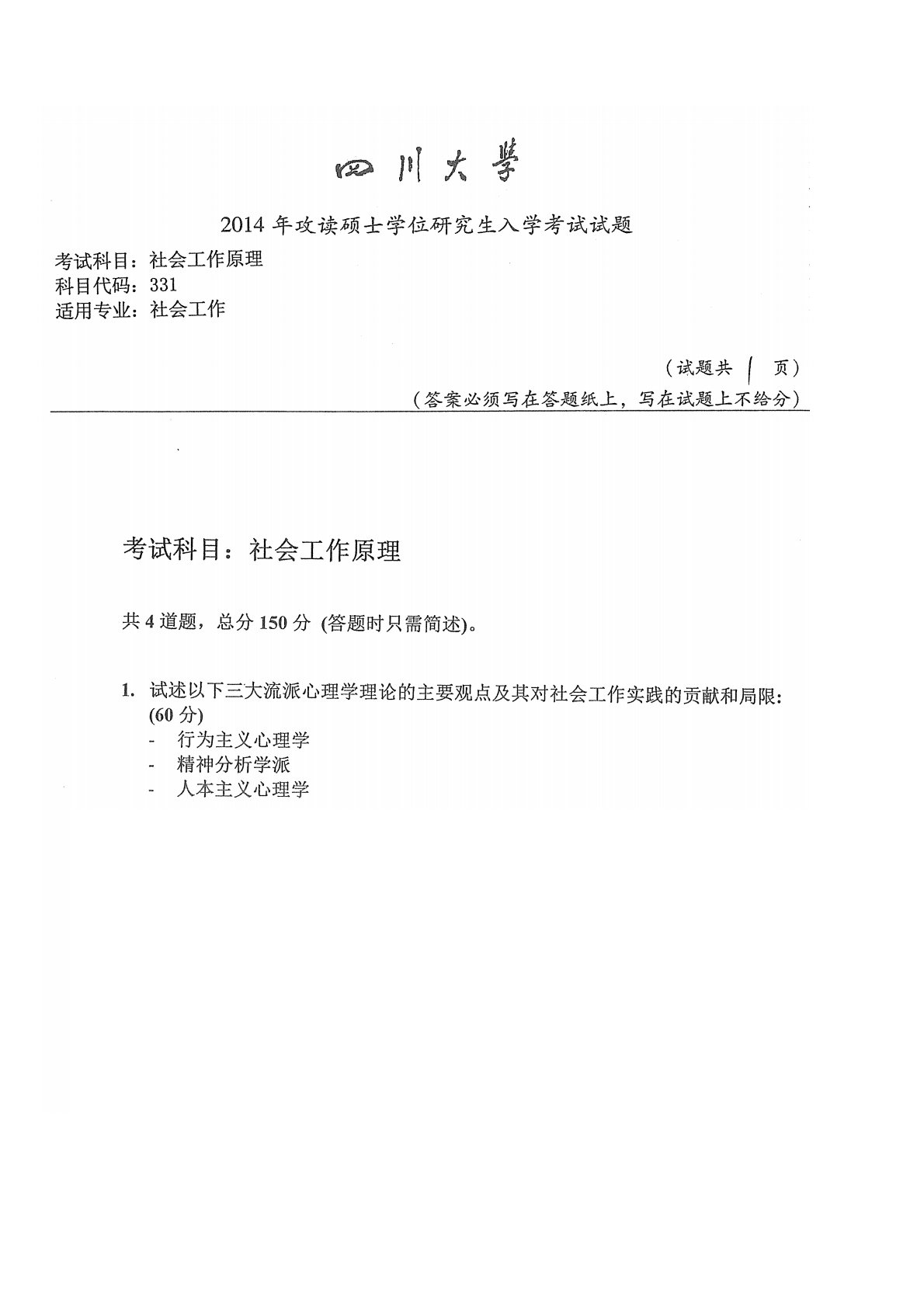 四川大学331社会工作原理2014年真题
