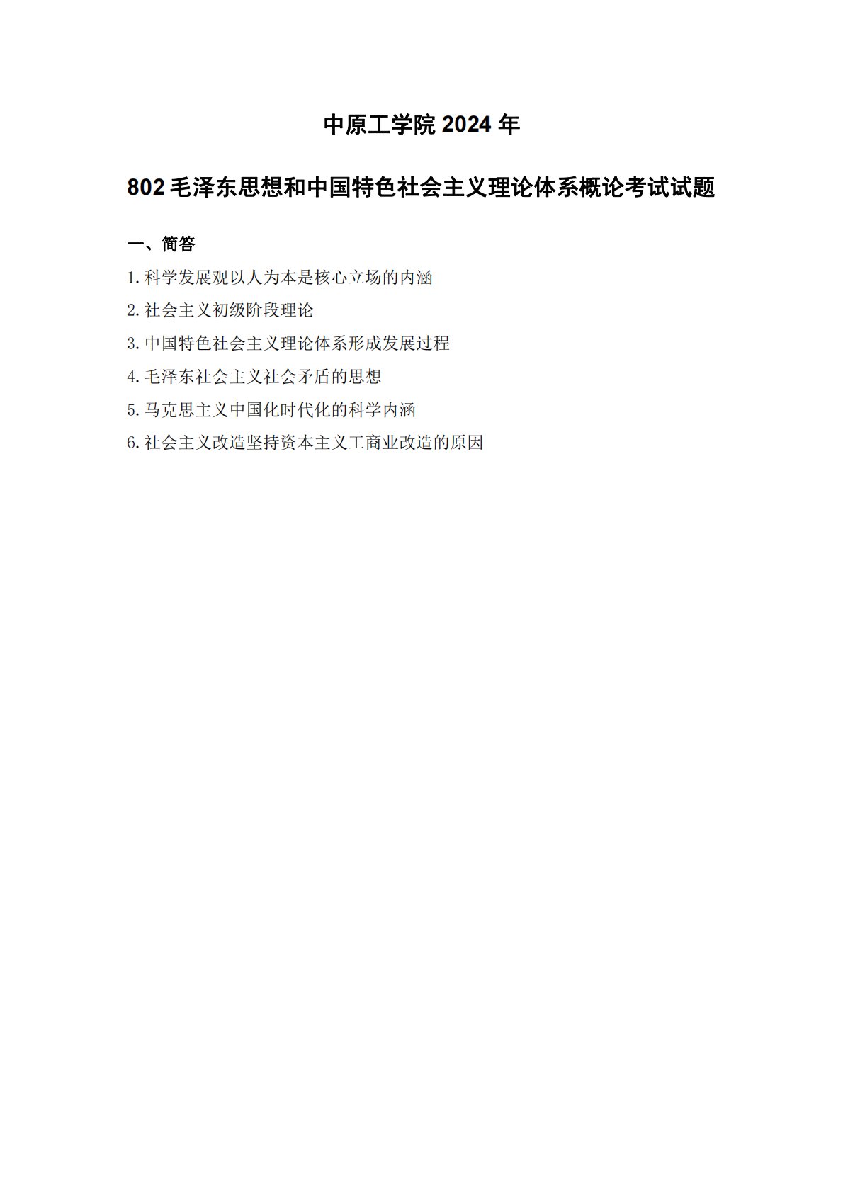中原工学院802毛泽东思想和中国特色社会主义理论体系概论2024年真题