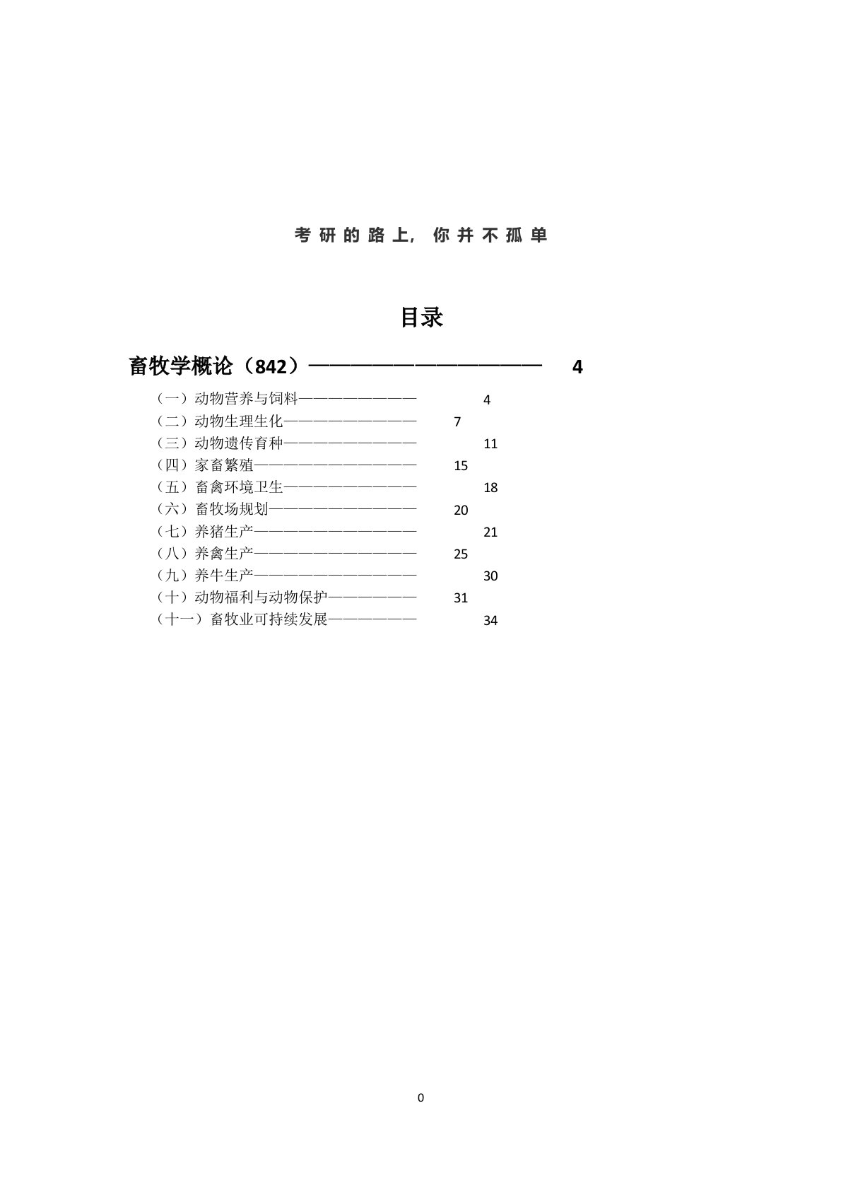 考研的路上,你并不孤单目录畜牧学概论(842)———————————4(一)动物营养与饲料————————4(二)动物生理生化—————————7(三)动物遗传育种—————————11(四)家畜繁殖———————————15(五)畜禽环境卫生—————————18(六)畜牧场规划——————————20(七)养猪生产———————————21(八)养禽生产———————————25(九)养牛生产———————————30(十)动物福利与动物保护——————31(十一)畜牧业可持续发展——————34畜牧学概论(一)动物营养与饲料1.饲料与畜体的化学组成概略养分分类及其各类养分的概念水分:指新...