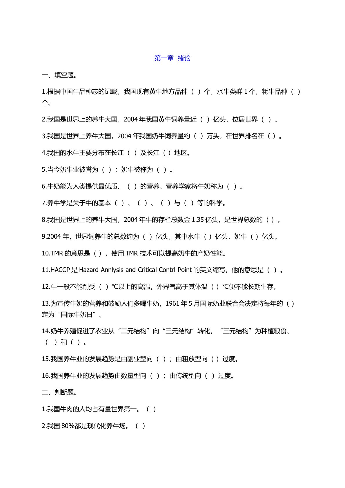 第一章 绪论一、填空题。1.根据中国牛品种志的记载,我国现有黄牛地方品种( )个,水牛类群1个,牦牛品种( )个。2.我国是世界上的养牛大国,2004年我国黄牛饲养量近( )亿头,位居世界( )。3.我国是世界上养牛大国,2004年我国奶牛饲养量约( )万头,在世界排名在( )。4.我国的水牛主要分布在长江( )及长江( )地区。5.当今奶牛业被誉为( );奶牛被称为( )。6.牛奶能为人类提供最优质、( )的营养。营养学家将牛奶称为( )。7.养牛学是关于牛的基本( )、( )、( )与( )等的科学。8.我国是世界上的养牛大国,2004年牛的存栏总数金1.35...